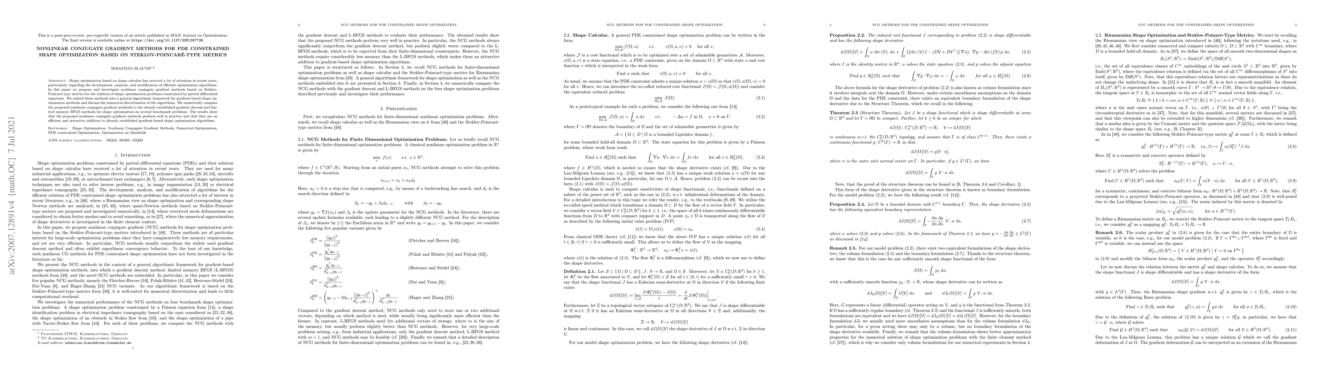 This paper proposes and investigates nonlinear conjugate gradient methods based on Steklov-Poincaré-type metrics for PDE-constrained shape optimization. The methods are compared numerically to gradient descent and BFGS, showing improved efficiency and performance.