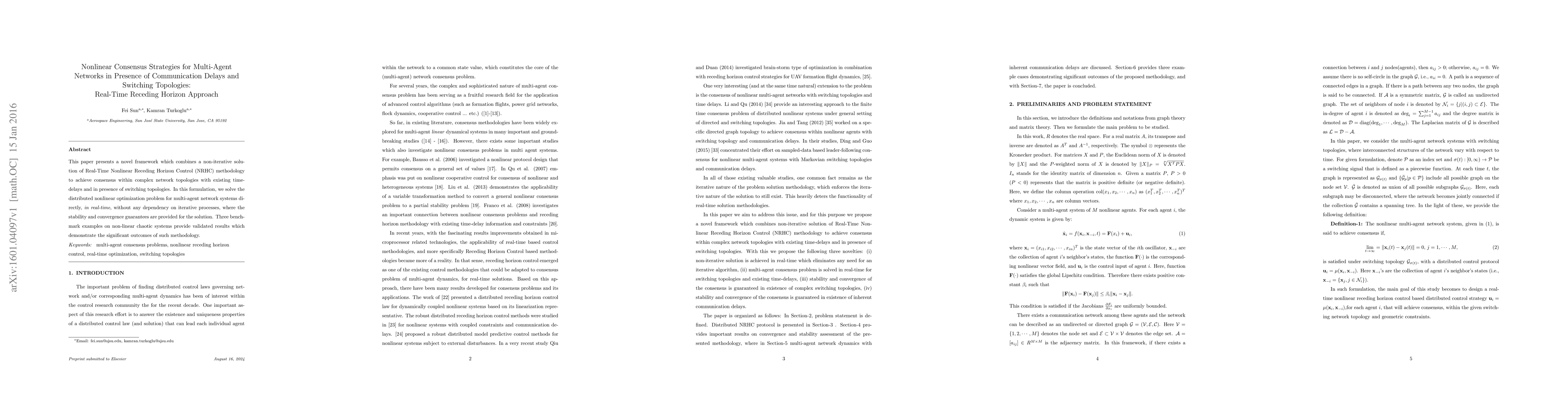 This paper presents a novel framework which combines a non-iterative solution of Real-Time Nonlinear Receding Horizon Control (NRHC) methodology to achieve consensus within complex network topologies with existing time-delays and in presence of switching topologies. In this formulation, we solve the distributed nonlinear optimization problem for multi-agent network systems directly, \emph{in real-time}, without any dependency on iterative processes, where the stability and convergence guarantees are provided for the solution. Three benchmark examples on non-linear chaotic systems provide validated results which demonstrate the significant outcomes of such methodology.