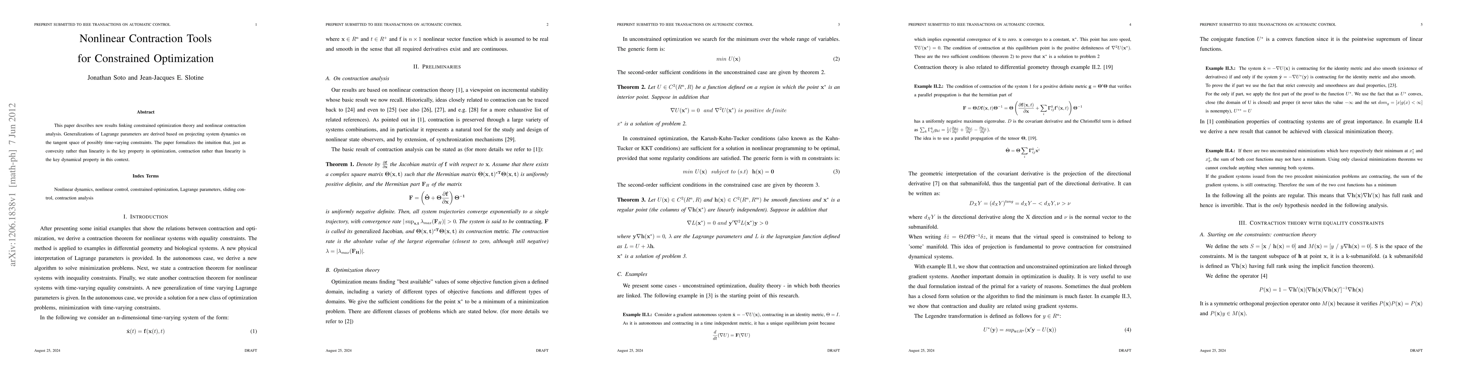 This paper describes new results linking constrained optimization theory and nonlinear contraction analysis. Generalizations of Lagrange parameters are derived based on projecting system dynamics on the tangent space of possibly time-varying constraints. The paper formalizes the intuition that, just as convexity rather than linearity is the key property in optimization, contraction rather than linearity is the key dynamical property in this context.
