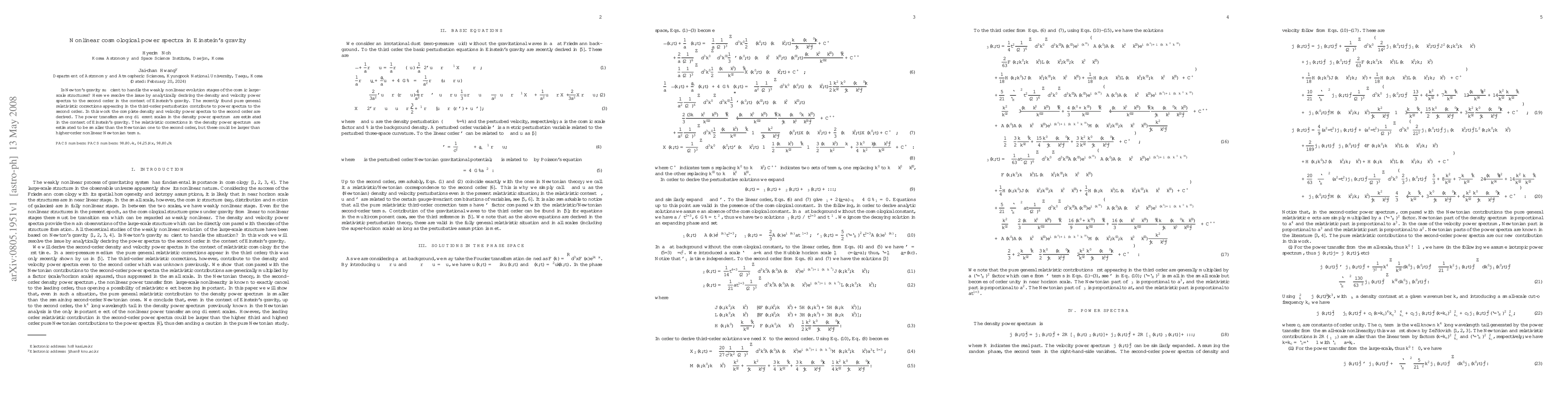 This paper derives the density and velocity power spectra to the second order in Einstein's gravity, showing that general relativistic corrections contribute to these spectra. It finds that while relativistic corrections are smaller than Newtonian ones to the second order, they may surpass higher-order nonlinear Newtonian terms.