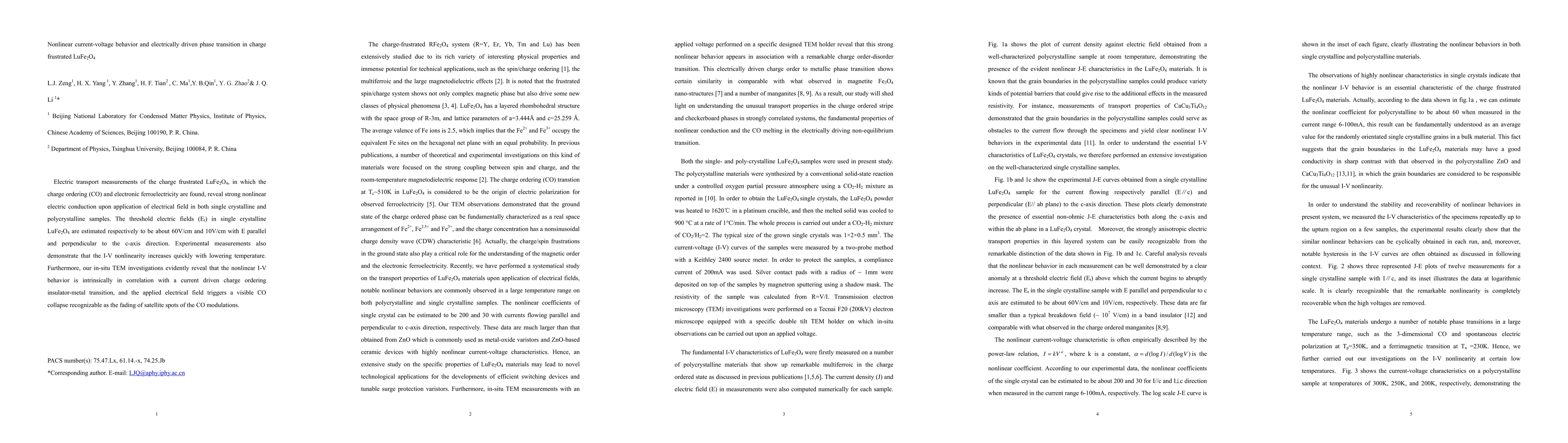 Electric transport measurements of the charge frustrated LuFe2O4, in which the charge ordering (CO) and electronic ferroelectricity are found, reveal strong nonlinear electric conduction upon application of electrical field in both single crystalline and polycrystalline samples. The threshold electric fields (Et) in single crystalline LuFe2O4 are estimated respectively to be about 60V/cm and 10V/cm with E parallel and perpendicular to the c-axis direction. Experimental measurements also demonstrate that the I-V nonlinearity increases quickly with lowering temperature. Furthermore, our in-situ TEM investigations evidently reveal that the nonlinear I-V behavior is intrinsically in correlation with a current driven charge ordering insulator-metal transition, and the applied electrical field triggers a visible CO collapse recognizable as the fading of satellite spots of the CO modulations.