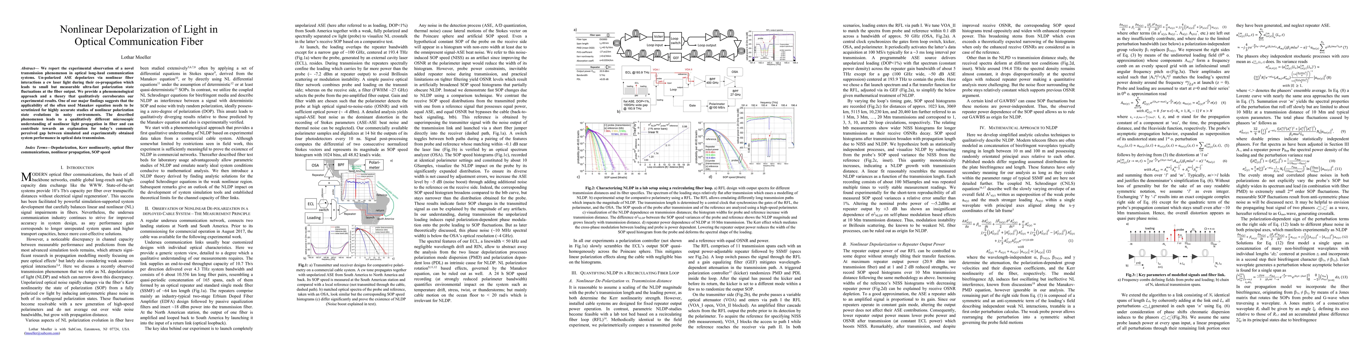 We report the experimental observation of a novel transmission phenomenon in optical long-haul communication systems. Un-polarized ASE depolarizes via nonlinear fiber interactions a cw laser light during their co-propagation which leads to small but measurable ultra-fast polarization state fluctuations at the fiber output. We provide a phenomenological approach and a theory that qualitatively corroborates our experimental results. One of our major findings suggests that the applicability of the often used Manakov equation needs to be scrutinized for highly accurate studies of nonlinear polarization state evolutions in noisy environments. The described phenomenon leads to a qualitatively different microscopic understanding of nonlinear light propagation in fiber and can contribute towards an explanation for todays commonly perceived gap between simulated and experimentally obtained system performance in optical data transmission.