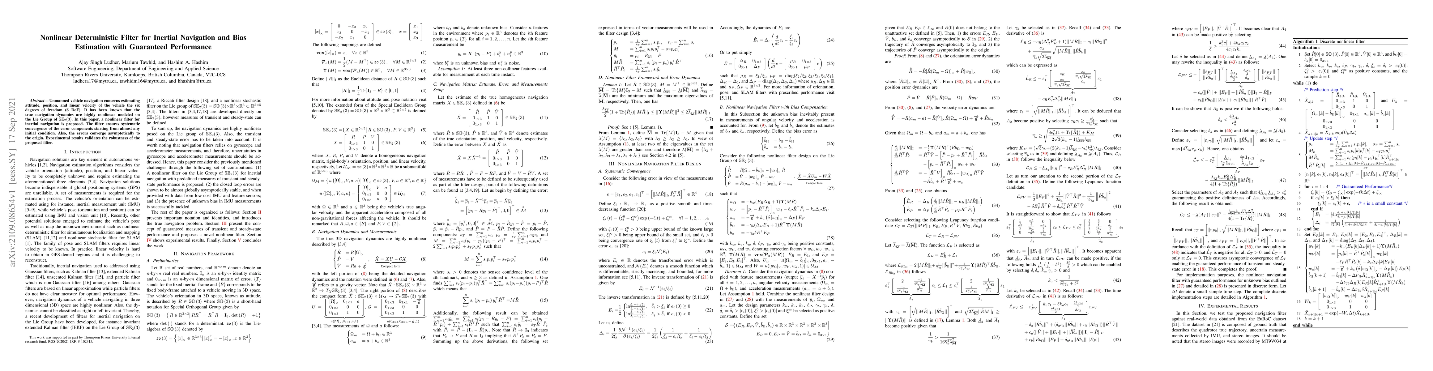 Unmanned vehicle navigation concerns estimating attitude, position, and linear velocity of the vehicle the six degrees of freedom (6 DoF). It has been known that the true navigation dynamics are highly nonlinear modeled on the Lie Group of $\mathbb{SE}_{2}(3)$. In this paper, a nonlinear filter for inertial navigation is proposed. The filter ensures systematic convergence of the error components starting from almost any initial condition. Also, the errors converge asymptotically to the origin. Experimental results validates the robustness of the proposed filter.