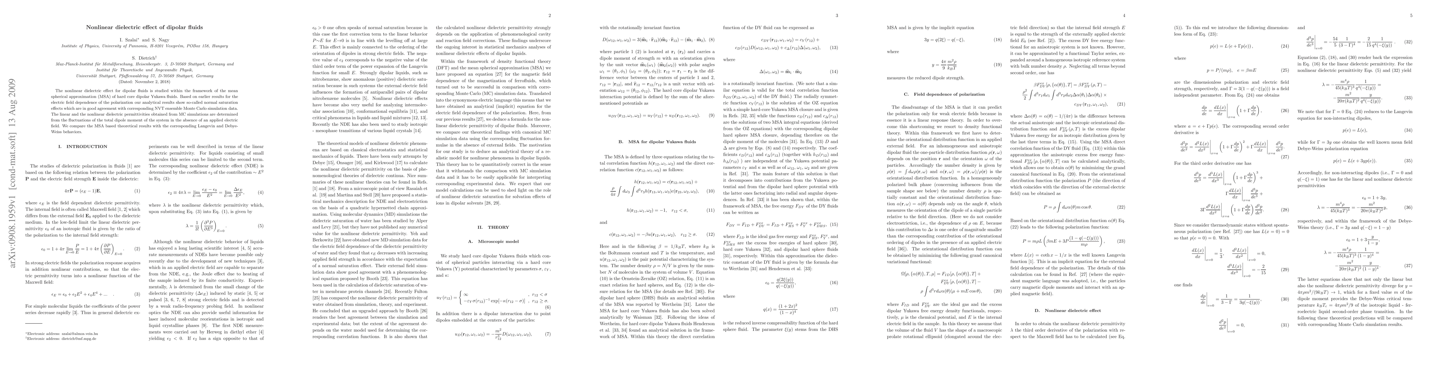 This paper investigates the nonlinear dielectric effect in dipolar fluids using the mean spherical approximation, revealing normal saturation effects that align well with Monte Carlo simulation data. Theoretical results are compared against Langevin and Debye-Weiss behaviors to validate the model.