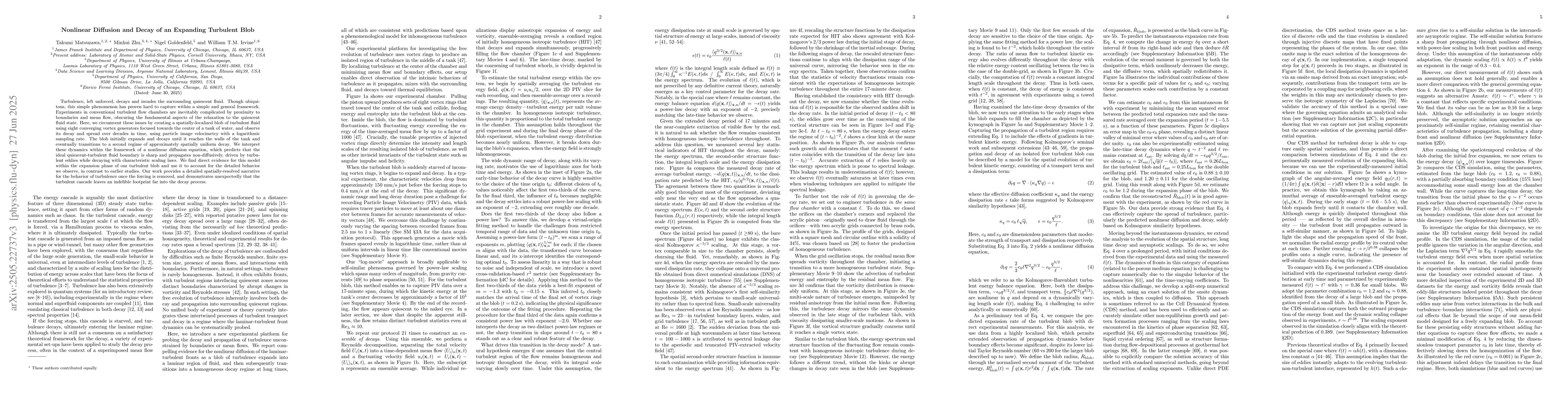 The development and validation of a nonlinear diffusion equation framework to describe the decay of a turbulent blob, providing insights into the quiescent-turbulent fluid boundary dynamics.
