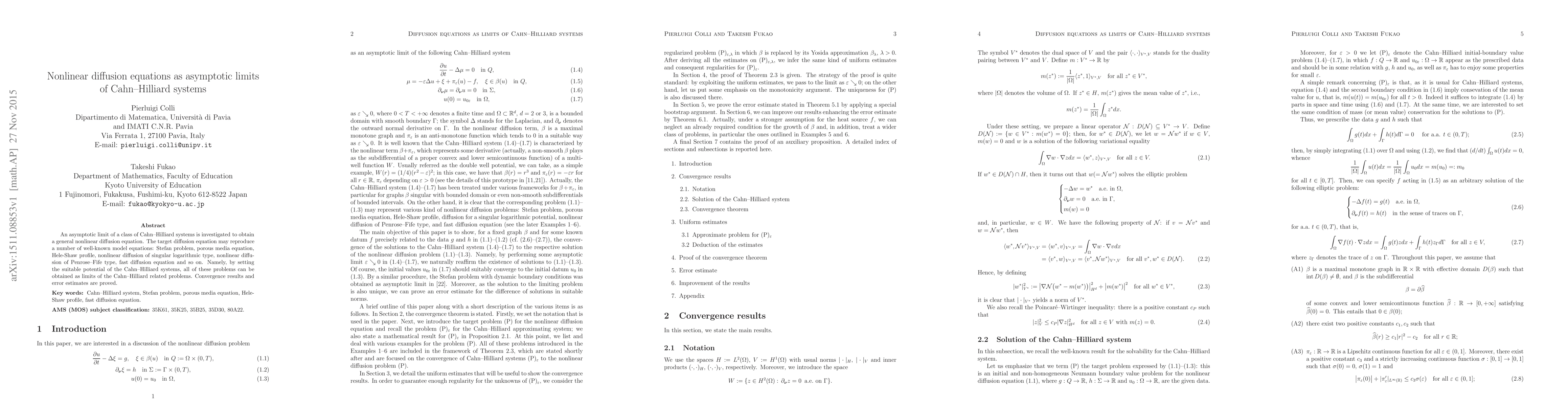 This paper investigates the asymptotic limit of Cahn-Hilliard systems to derive a general nonlinear diffusion equation, which encompasses various well-known models such as the Stefan problem and porous media equation. Convergence results and error estimates are provided to demonstrate the derivation.
