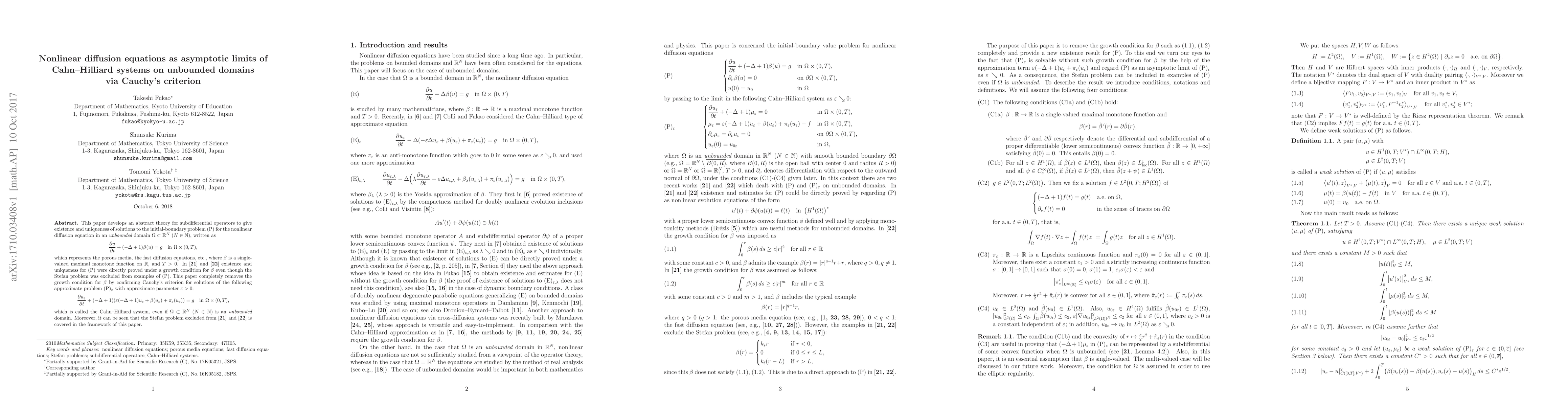 This paper establishes an abstract theory for subdifferential operators to prove the existence and uniqueness of solutions to nonlinear diffusion equations in unbounded domains, removing growth conditions for the function β. It demonstrates Cauchy's criterion for solutions of the Cahn-Hilliard system, thereby extending the framework to cover the Stefan problem.