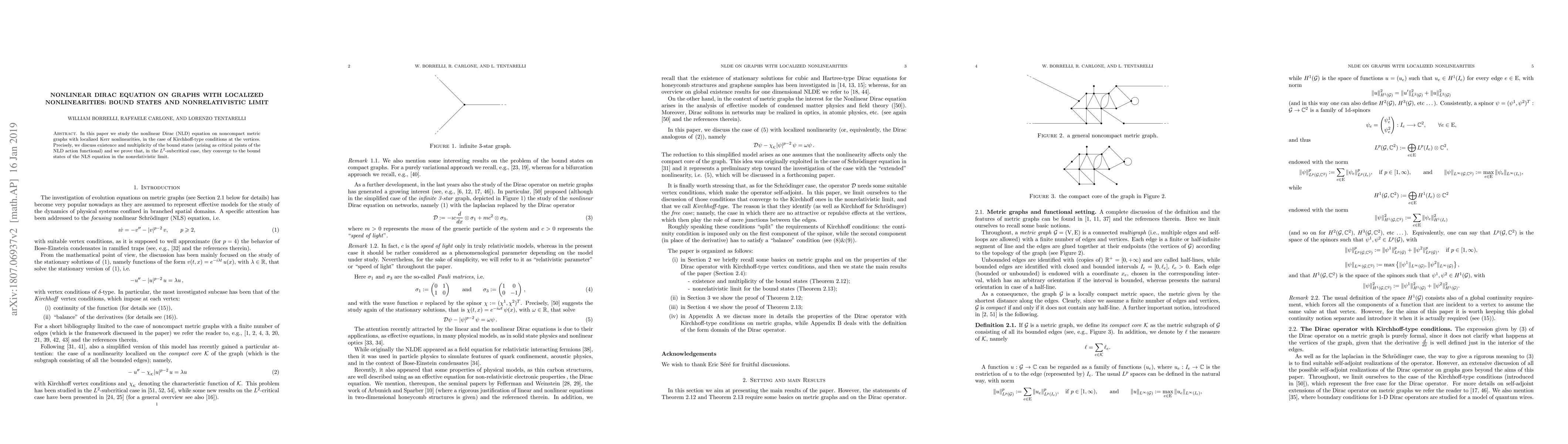 This paper investigates the nonlinear Dirac equation on metric graphs with localized Kerr nonlinearities, focusing on the existence and multiplicity of bound states. It also proves the convergence of these states to the bound states of the nonrelativistic NLS equation in the $L^2$-subcritical case.