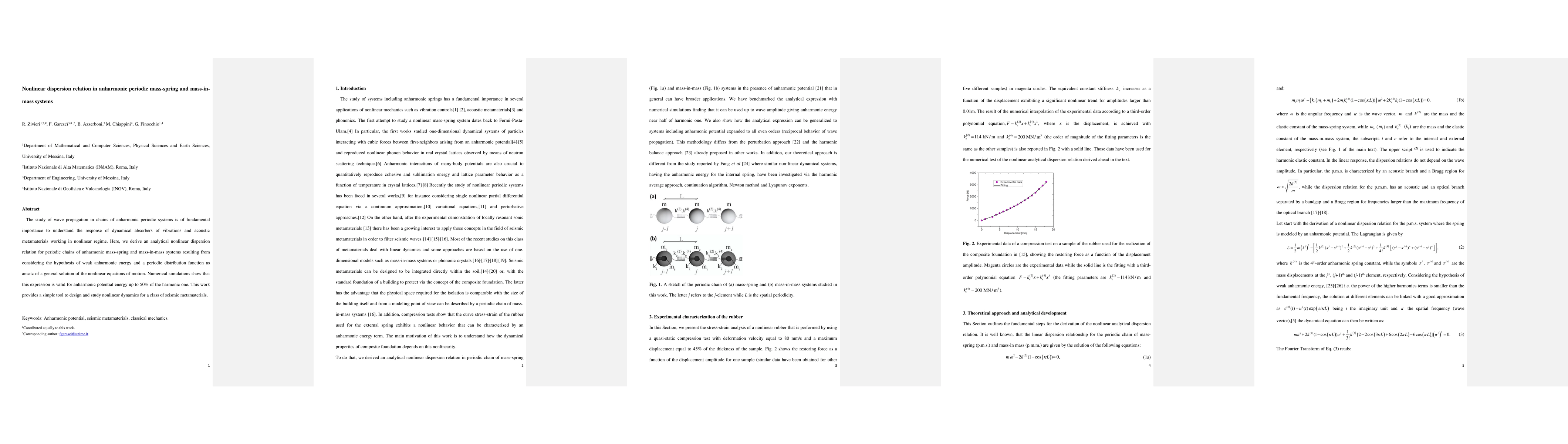 This paper derives an analytical nonlinear dispersion relation for anharmonic periodic mass-spring and mass-in-mass systems, crucial for understanding the dynamics of vibration absorbers and acoustic metamaterials. The study validates the expression through numerical simulations for anharmonic potentials up to 50% of the harmonic potential.