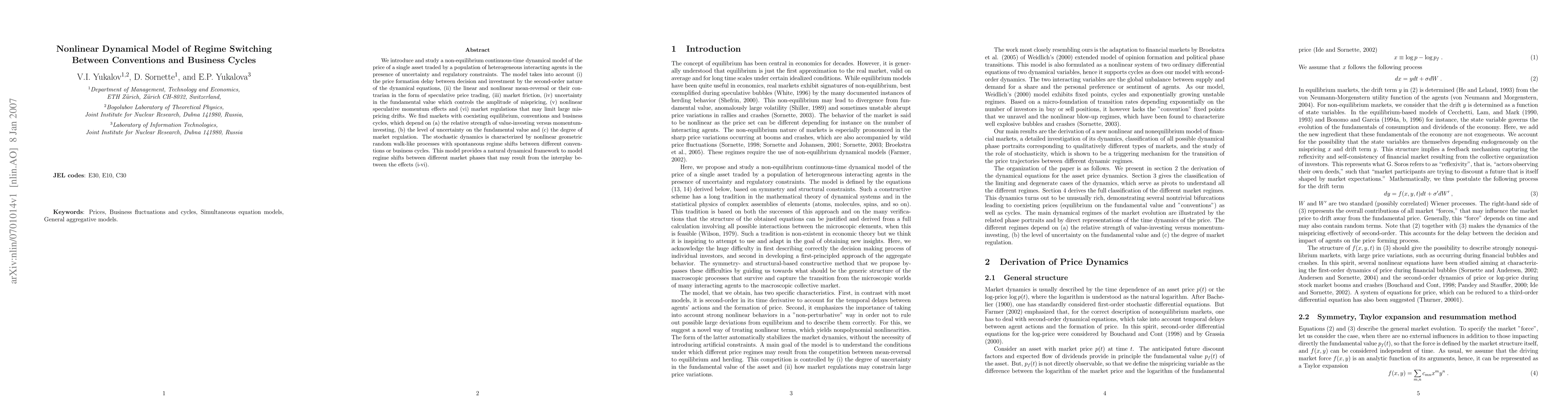 A new model describes how markets switch between calm periods of conventions and chaotic phases of business cycles, influenced by factors like investor behavior, uncertainty, and regulation.