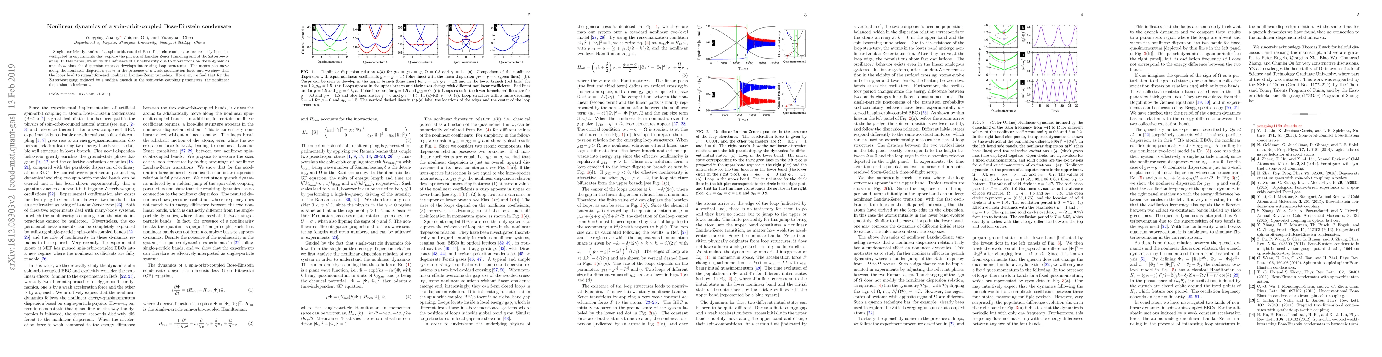 This paper investigates the nonlinear dynamics of a spin-orbit-coupled Bose-Einstein condensate, revealing that interaction-induced nonlinearity leads to loop structures in the dispersion relation. The nonlinear dispersion facilitates straightforward nonlinear Landau-Zener tunneling, but it does not affect the Zitterbewegung induced by sudden changes in spin-orbit coupling parameters.