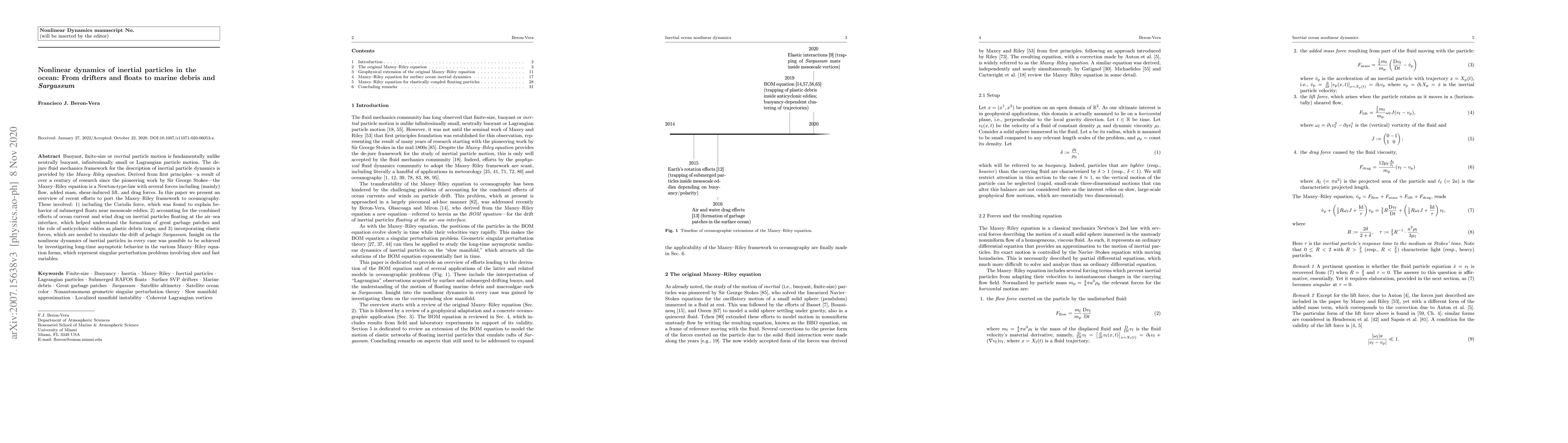 Researchers used the Maxey-Riley equation to study the motion of inertial particles in the ocean, including drifters, floats, marine debris, and Sargassum, revealing insights into their nonlinear dynamics.