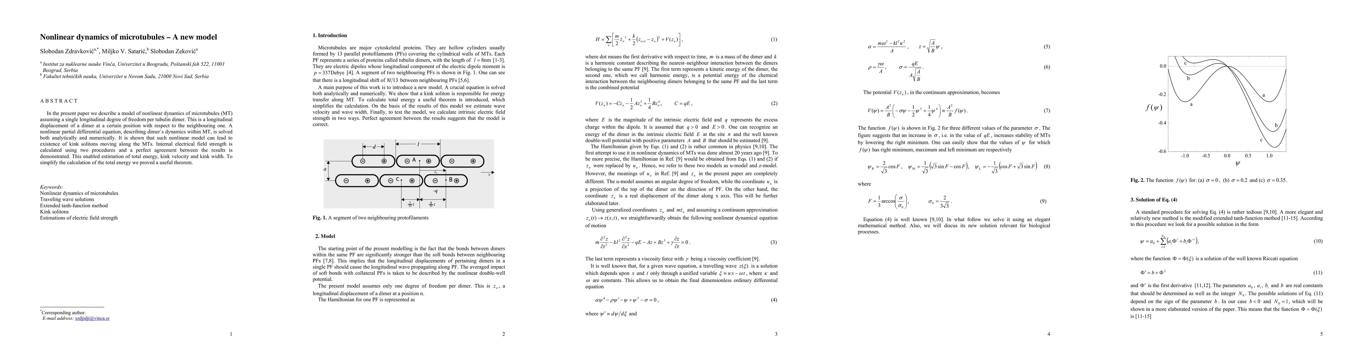 Researchers developed a new model to study microtubules' nonlinear dynamics, finding that they can create kink solitons that move along the structure, which helps estimate total energy and other properties.