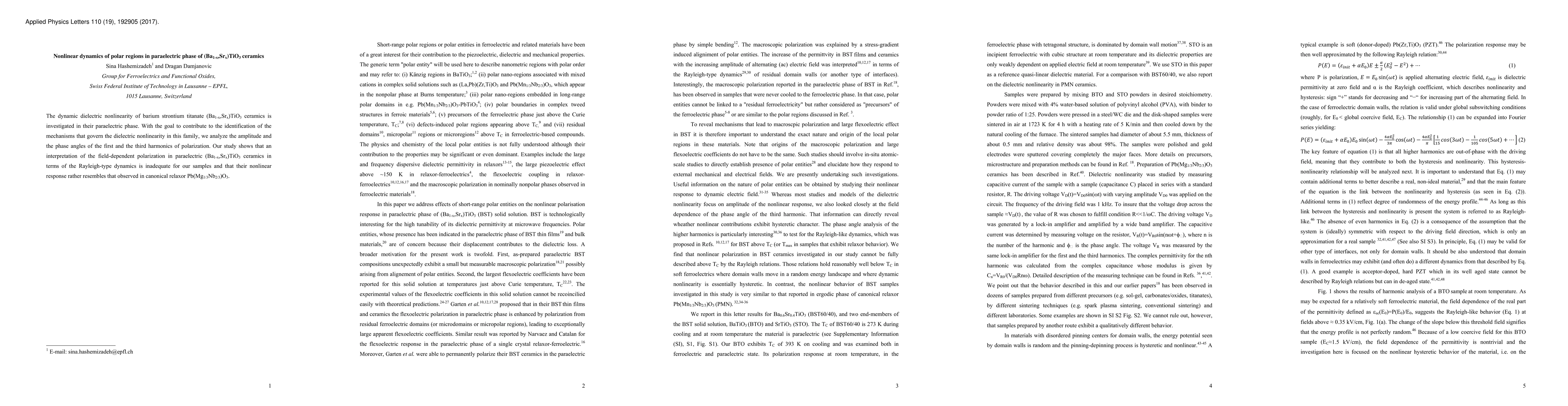 The dynamic dielectric nonlinearity of barium strontium titanate (Ba1-x,Srx)TiO3 ceramics is investigated in their paraelectric phase. With the goal to contribute to the identification of the mechanisms that govern the dielectric nonlinearity in this family, we analyze the amplitude and the phase angles of the first and the third harmonics of polarization. Our study shows that an interpretation of the field-dependent polarization in paraelectric (Ba1-x,Srx)TiO3 ceramics in terms of the Rayleigh-type dynamics is inadequate for our samples and that their nonlinear response rather resembles that observed in canonical relaxor Pb(Mg1/3Nb2/3)O3.