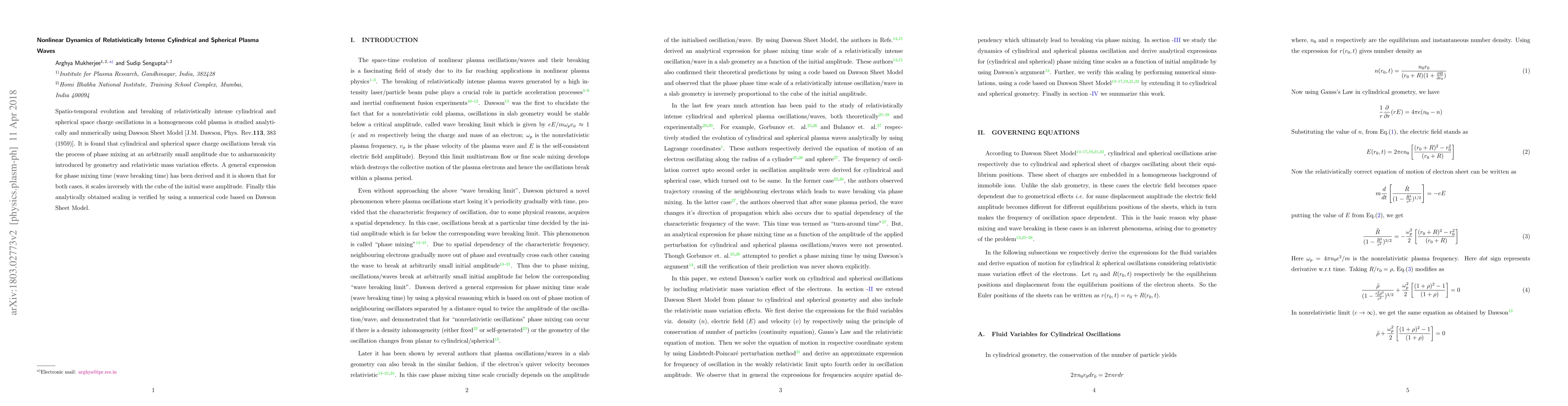 This paper investigates the nonlinear dynamics of relativistically intense cylindrical and spherical plasma waves, revealing that they break via phase mixing due to anharmonicity from geometry and relativistic mass effects. A derived expression for phase mixing time scales inversely with the cube of the initial wave amplitude, verified through numerical simulations based on the Dawson Sheet Model.