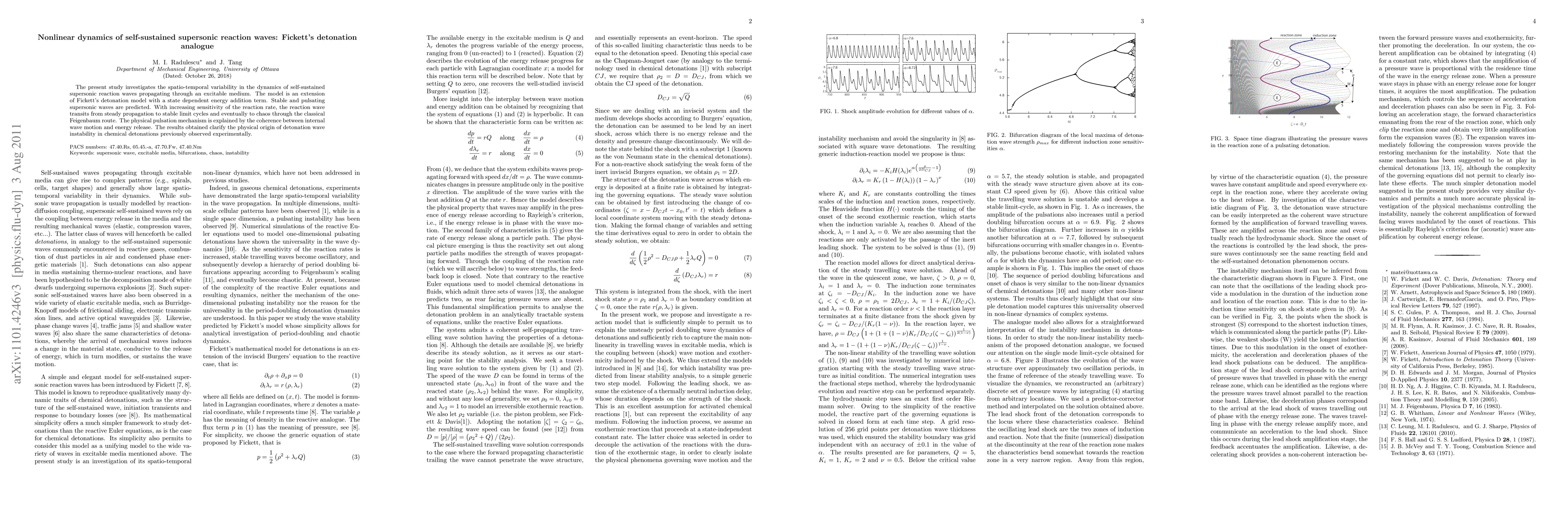 This study extends Fickett's detonation model to explore the nonlinear dynamics of self-sustained supersonic reaction waves, predicting stable, pulsating, and chaotic behaviors. The transition from steady to chaotic propagation is explained through coherence between internal wave motion and energy release, clarifying the instability mechanisms in chemical detonations.