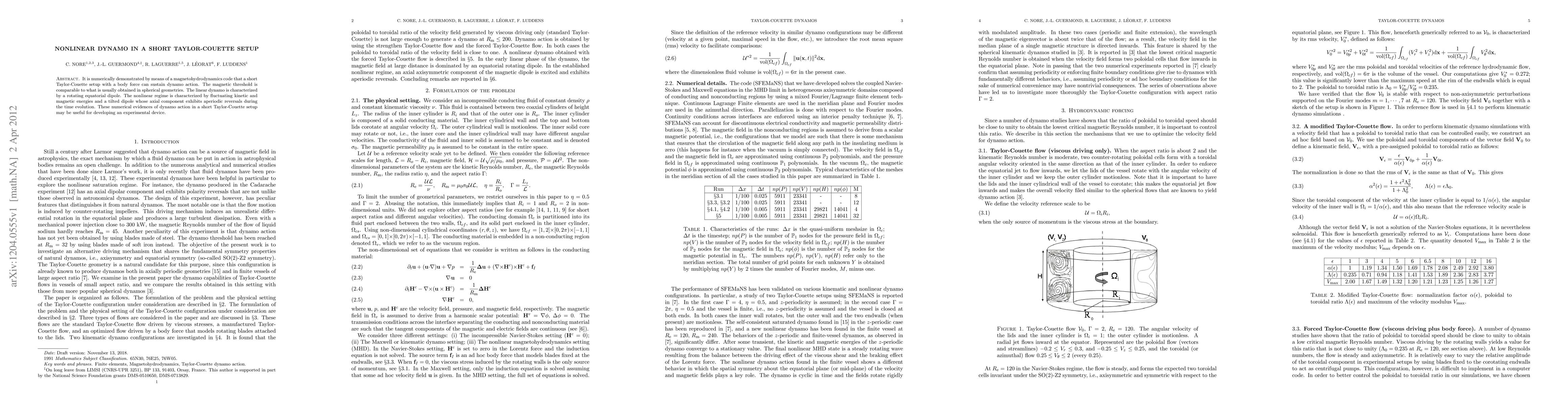 The research uses numerical simulations via a magnetohydrodynamics code to demonstrate dynamo action in a short Taylor-Couette setup with a body force.