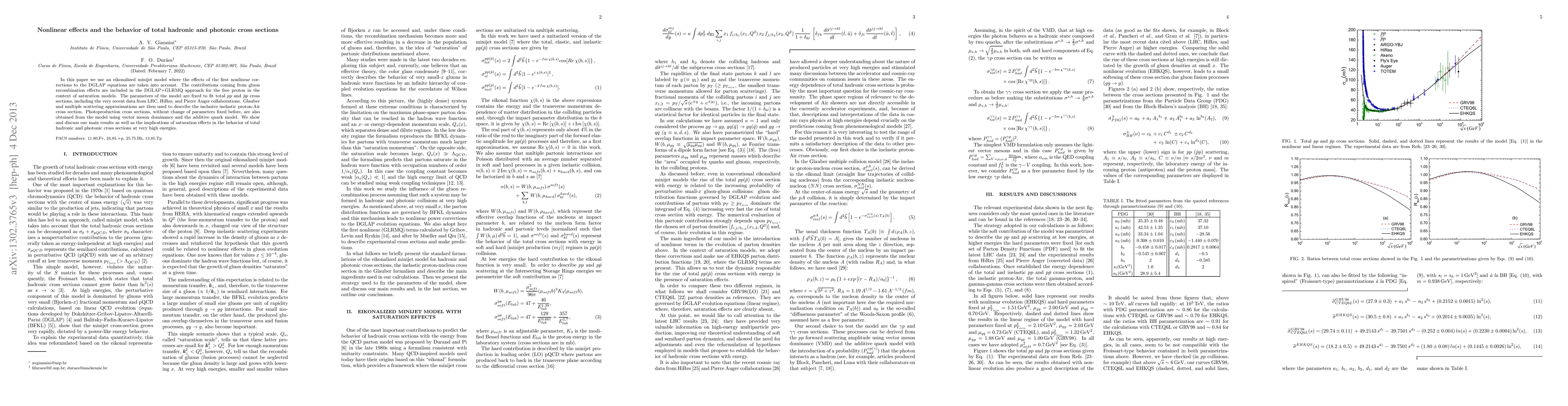 This paper investigates nonlinear effects in the DGLAP equations using an eikonalized minijet model, incorporating gluon recombination and saturation effects. The model fits recent LHC data and predicts total hadronic and photonic cross sections, highlighting the implications of saturation at high energies.