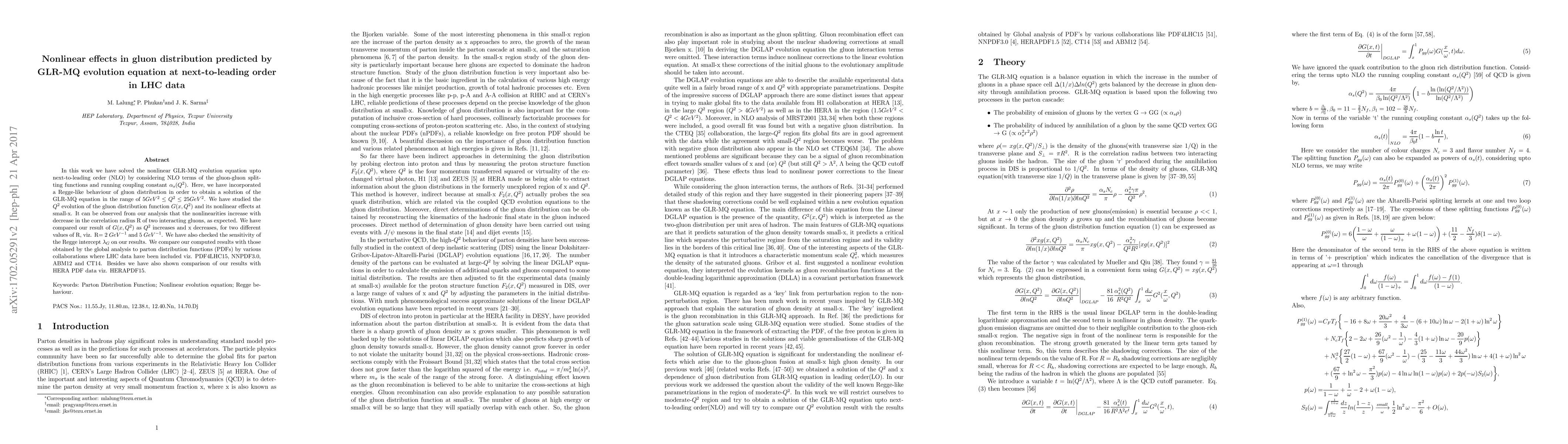 In this work we have solved the nonlinear GLR-MQ evolution equation upto next-to-leading order (NLO) by considering NLO terms of the gluon-gluon splitting functions and running coupling constant $\alpha_s(Q^2)$. Here, we have incorporated a Regge-like behaviour of gluon distribution in order to obtain a solution of the GLR-MQ equation in the range of $5 GeV^2 \leq Q^2 \leq 25 GeV^2$. We have studied the $Q^2$ evolution of the gluon distribution function $G(x,Q^2)$ and its nonlinear effects at small-x. It can be observed from our analysis that the nonlinearities increase with decrease in the correlation radius R of two interacting gluons, as expected. We have compared our result of $G(x,Q^2)$ as $Q^2$ increases and x decreases, for two different values of R, viz. R= 2 $GeV^{-1}$ and 5 $GeV^{-1}$. We have also checked the sensitivity of the Regge intercept $\lambda_G$ on our results. We compare our computed results with those obtained by the global analysis to parton distribution functions (PDFs) by various collaborations where LHC data have been included viz. PDF4LHC15, NNPDF3.0, ABM12 and CT14. Besides we have also shown comparison of our results with HERA PDF data viz. HERAPDF15.