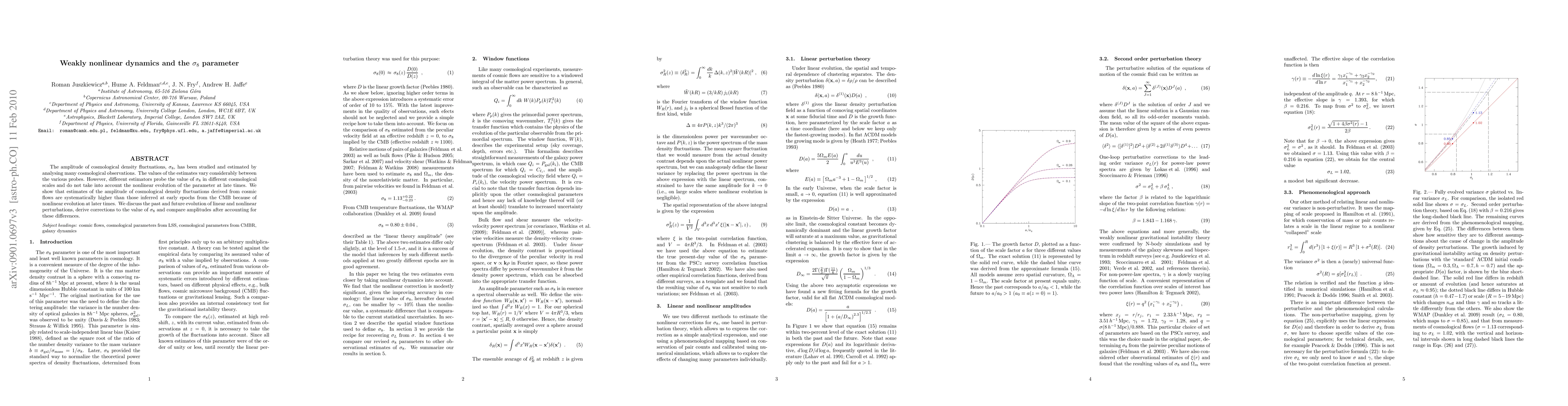 This paper investigates the amplitude of cosmological density fluctuations, sigma_8, revealing that estimates from cosmic flows are higher than those from early CMB data due to nonlinear evolution at later times. It proposes corrections to sigma_8 values and discusses the implications for understanding linear and nonlinear perturbations in the universe's evolution.