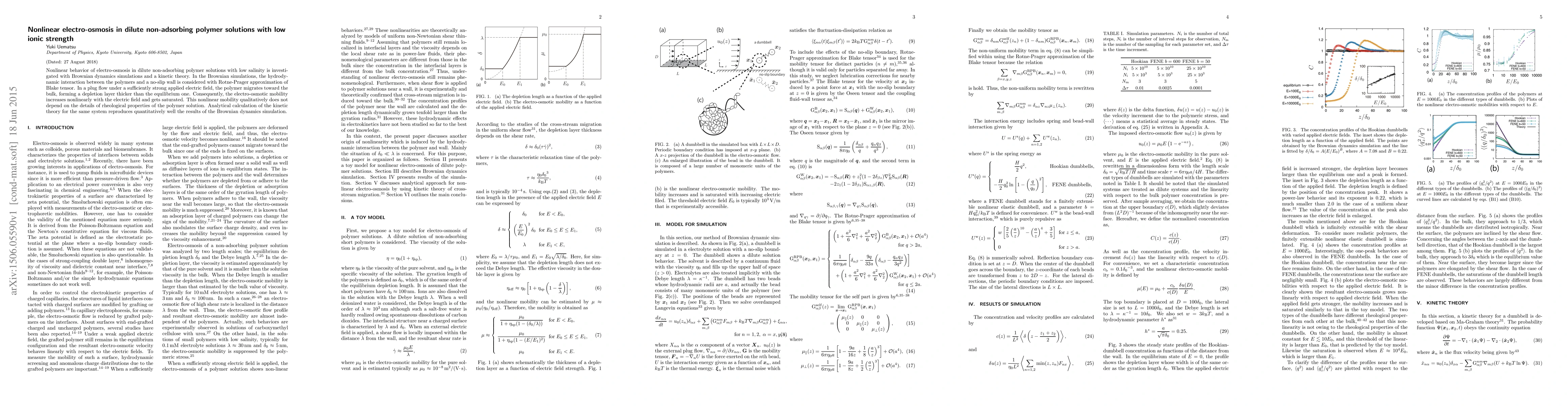 This paper investigates nonlinear electro-osmosis in dilute non-adsorbing polymer solutions with low ionic strength, using Brownian dynamics simulations and kinetic theory. The simulations show that under strong electric fields, polymer migration forms a thicker depletion layer, leading to nonlinearly increasing electro-osmotic mobility that saturates, a behavior well-reproduced by the kinetic theory.