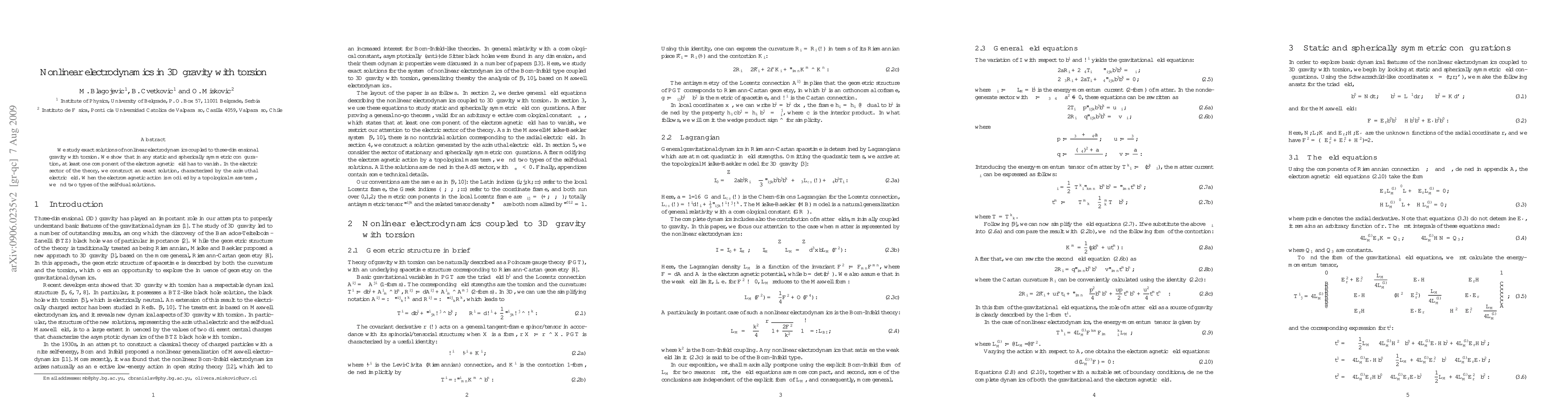 A combination of analytical and numerical methods were used to investigate the properties of 3D gravity with torsion.