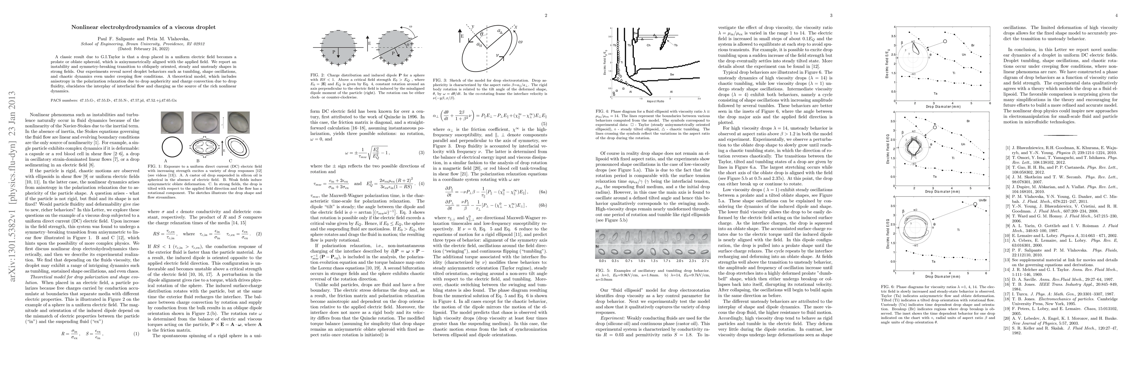 A classic result due to G.I.Taylor is that a drop placed in a uniform electric field becomes a prolate or oblate spheroid, which is axisymmetrically aligned with the applied field. We report an instability and symmetry-breaking transition to obliquely oriented, steady and unsteady shapes in strong fields. Our experiments reveal novel droplet behaviors such as tumbling, shape oscillations, and chaotic dynamics even under creeping flow conditions. A theoretical model, which includes anisotropy in the polarization relaxation due to drop asphericity and charge convection due to drop fluidity, elucidates the interplay of interfacial flow and charging as the source of the rich nonlinear dynamics.