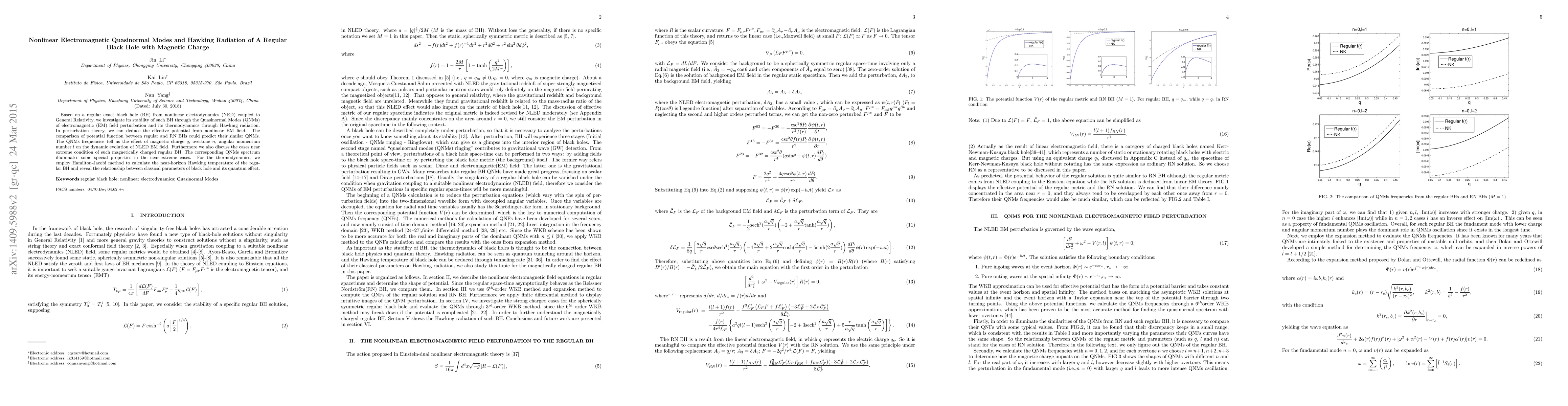 Based on a regular exact black hole (BH) from nonlinear electrodynamics (NED) coupled to General Relativity, we investigate its stability of such BH through the Quasinormal Modes (QNMs) of electromagnetic (EM) field perturbation and its thermodynamics through Hawking radiation. In perturbation theory, we can deduce the effective potential from nonlinear EM field. The comparison of potential function between regular and RN BHs could predict their similar QNMs. The QNMs frequencies tell us the effect of magnetic charge $q$, overtone $n$, angular momentum number $l$ on the dynamic evolution of NLED EM field. Furthermore we also discuss the cases near extreme condition of such magnetically charged regular BH. The corresponding QNMs spectrum illuminates some special properties in the near-extreme cases. For the thermodynamics, we employ Hamilton-Jacobi method to calculate the near-horizon Hawking temperature of the regular BH and reveal the relationship between classical parameters of black hole and its quantum effect.