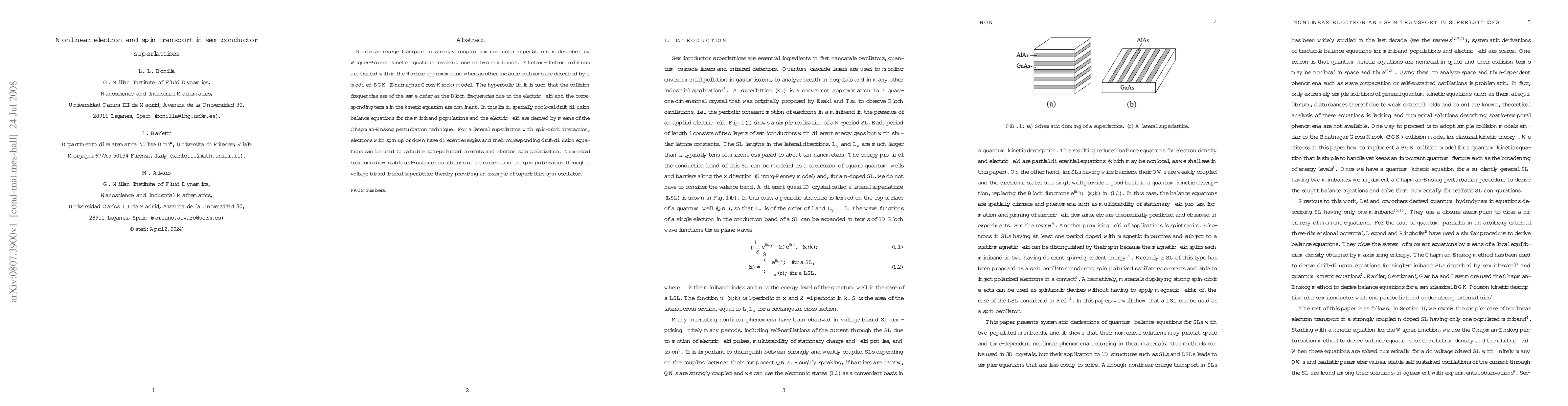 This paper investigates nonlinear electron and spin transport in semiconductor superlattices using Wigner-Poisson kinetic equations, showing stable self-sustained oscillations in spin-polarized currents due to spin-orbit interaction, thereby demonstrating a superlattice spin oscillator.