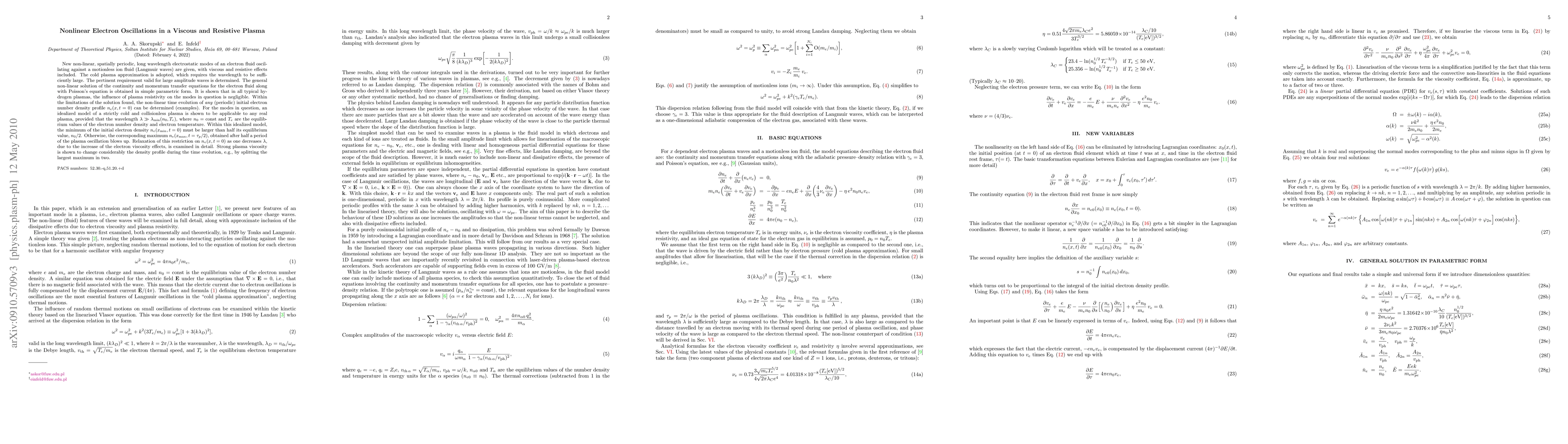 This paper explores nonlinear, spatially periodic Langmuir waves in viscous and resistive plasmas, deriving a general non-linear solution for the electron fluid's continuity and momentum transfer equations. It finds that plasma resistivity has negligible effects on these modes and demonstrates that a cold plasma model can apply to real plasmas, provided the wavelength is sufficiently large.