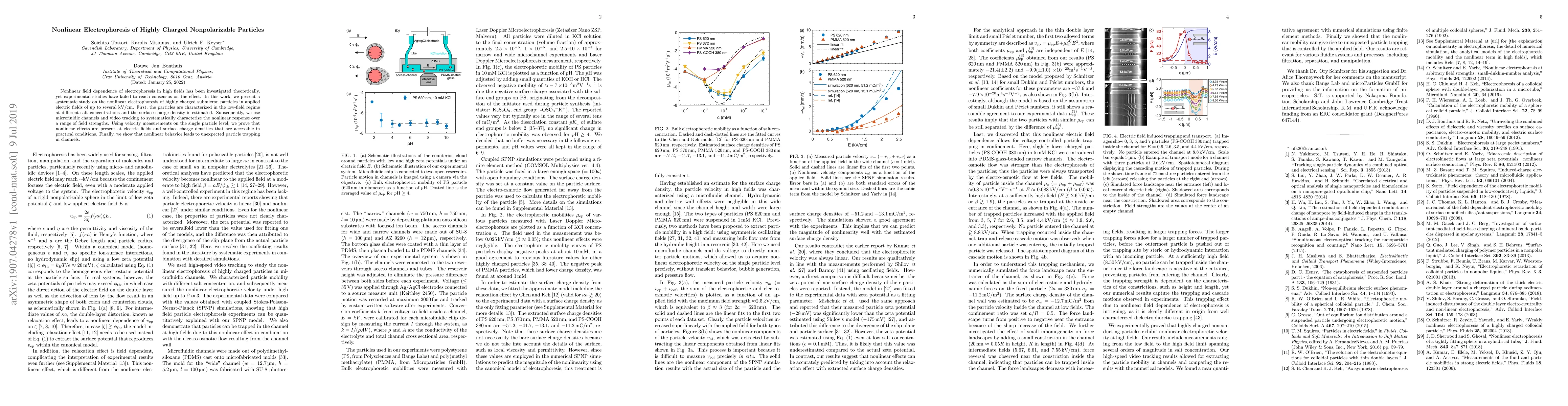This study investigates the nonlinear electrophoresis of highly charged submicron particles in high electric fields, demonstrating that nonlinear effects occur at practical field strengths and lead to particle trapping in microfluidic channels. Experimental results confirm the theoretical predictions of nonlinear field dependence.