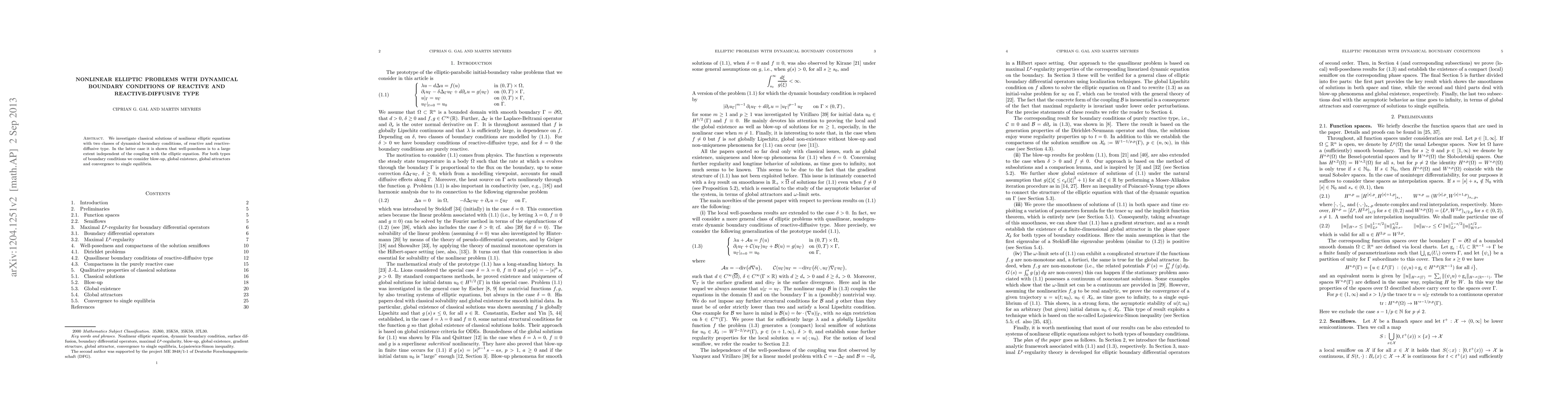 We investigate classical solutions of nonlinear elliptic equations with two classes of dynamical boundary conditions, of reactive and reactive-diffusive type. In the latter case it is shown that well-posedness is to a large extent independent of the coupling with the elliptic equation. For both types of boundary conditions we consider blow-up, global existence, global attractors and convergence to single equilibria.