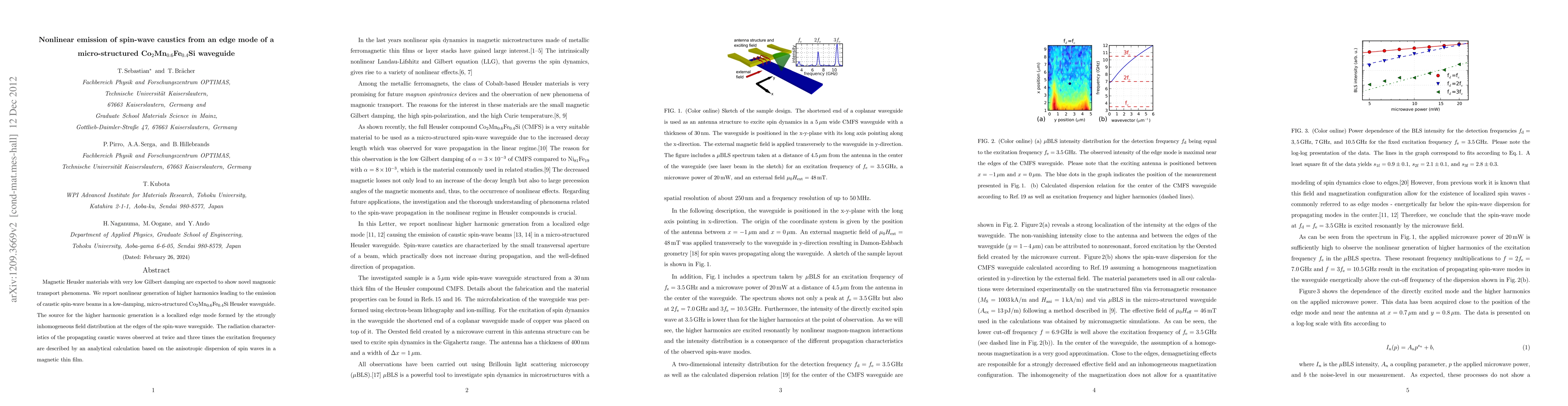 Researchers found that a specific micro-structured waveguide made of Co2Mn0.6Fe0.4Si material can generate caustic spin-wave beams when excited at twice or triple its original frequency, leading to novel magnonic transport phenomena.