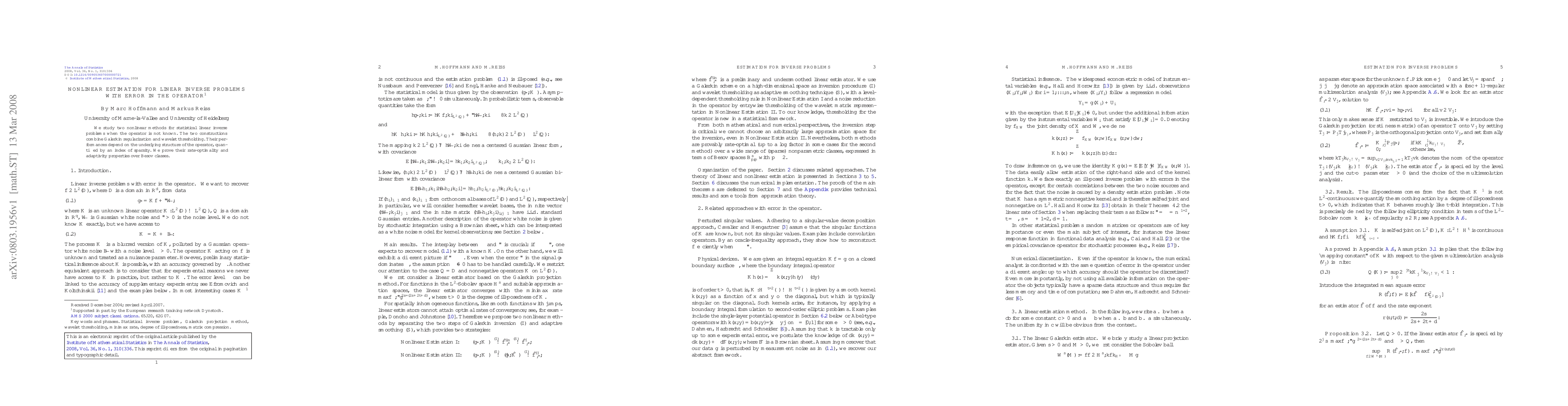 This research paper presents two nonlinear methods for solving linear inverse problems with unknown operators, demonstrating rate-optimality and adaptivity properties based on the operator's underlying structure.