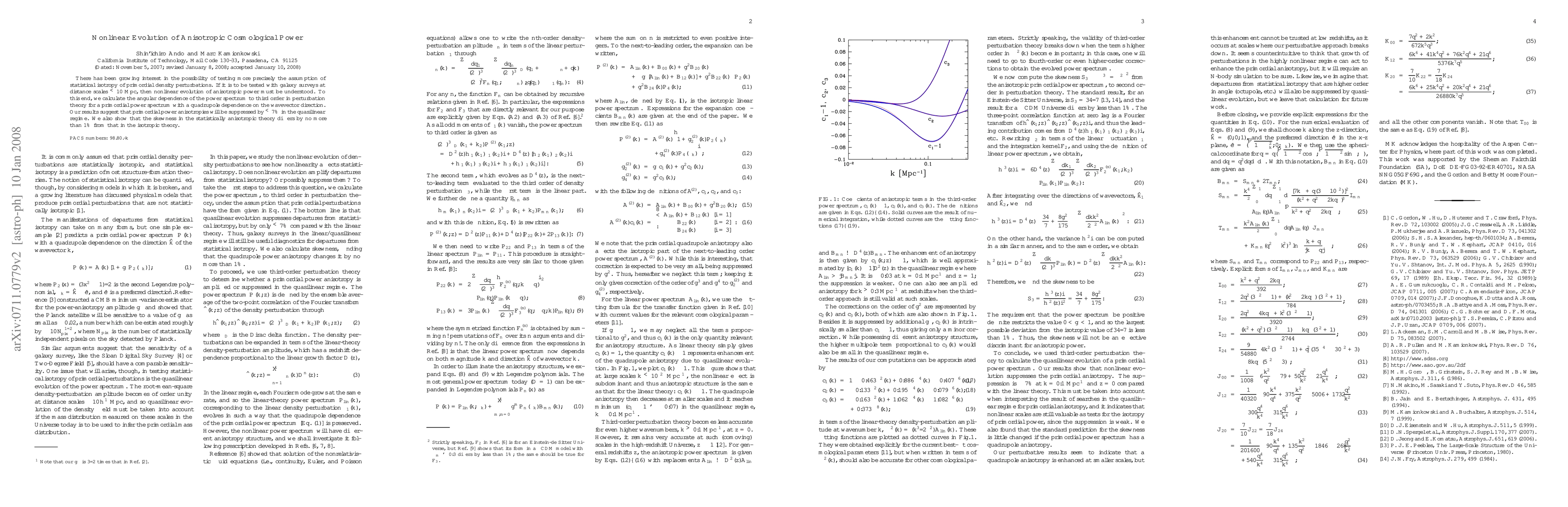 Researchers calculated the impact of nonlinear evolution on anisotropic power in cosmology, finding that primordial power anisotropies will be suppressed by less than 7% at a distance scale of 10 Mpc.