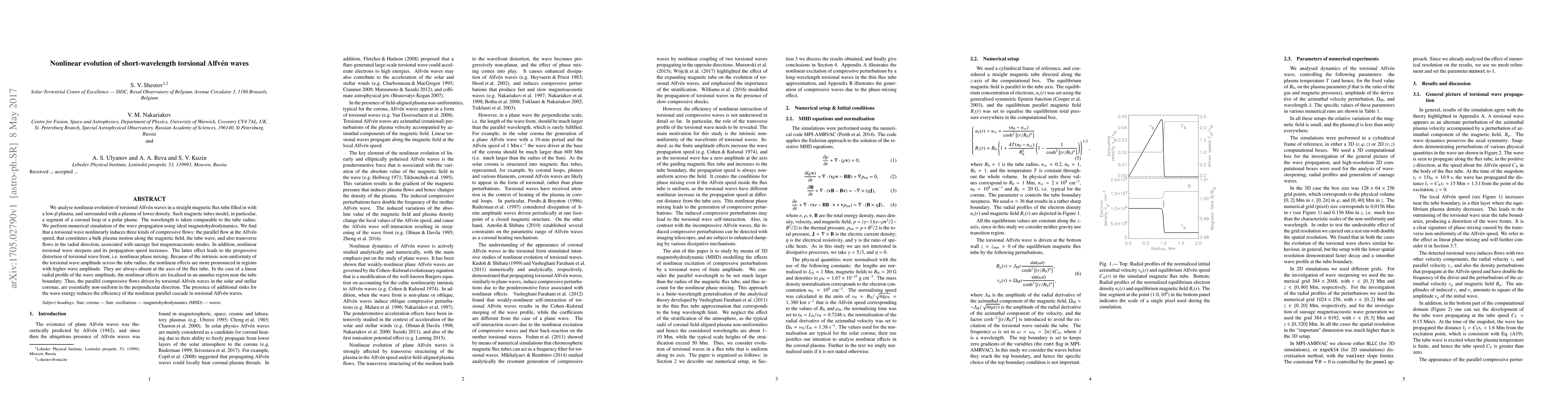 This research studies the nonlinear evolution of short-wavelength torsional Alfvén waves within a magnetic flux tube, revealing that these waves induce parallel, tube, and transverse compressive flows. Nonlinear steepening and phase mixing are observed, with pronounced effects in regions of higher wave amplitude, and the presence of wave energy sinks reduces the efficiency of the nonlinear cascade.