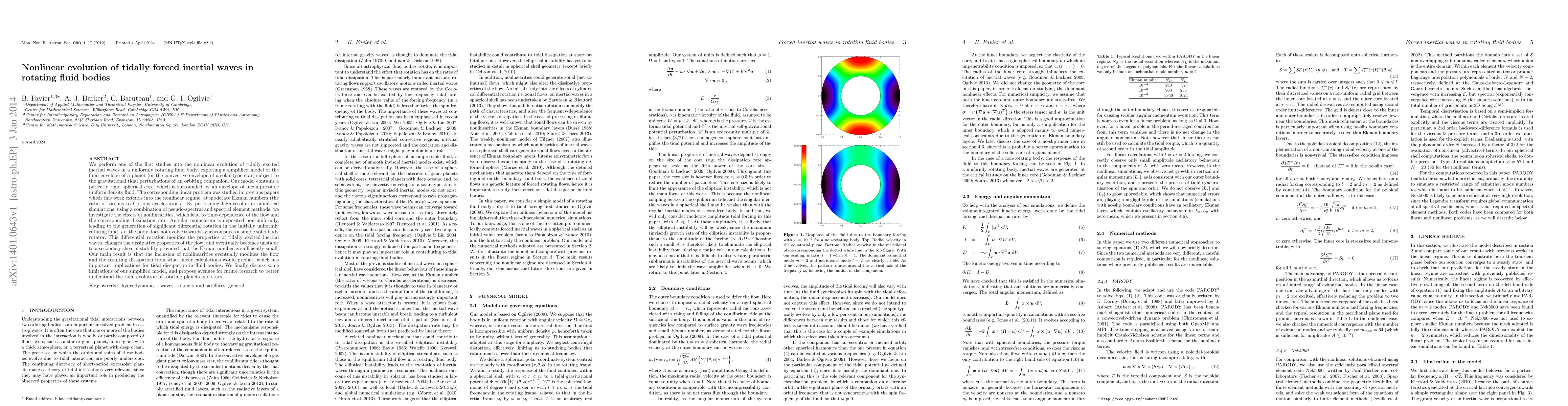This study investigates the nonlinear evolution of tidally excited inertial waves in a rotating fluid body, revealing that nonlinearities lead to differential rotation and modify dissipation rates, diverging from linear predictions. The findings have significant implications for understanding tidal dissipation in planets and stars.