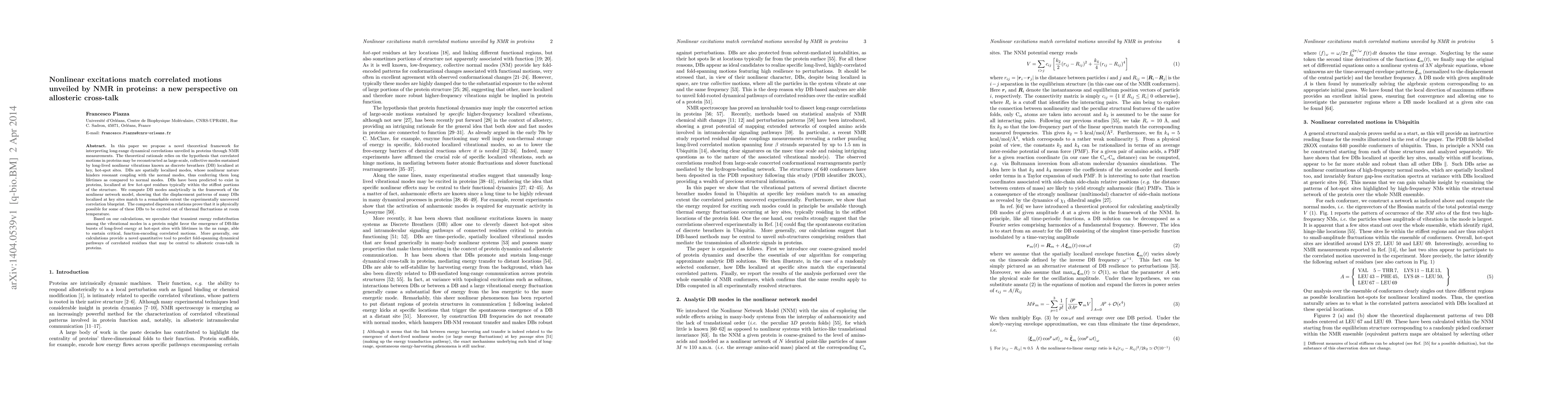 Researchers propose that nonlinear excitations in proteins can create collective modes with long lifetimes, matching correlated motions observed through NMR measurements, offering a new perspective on allosteric cross-talk.