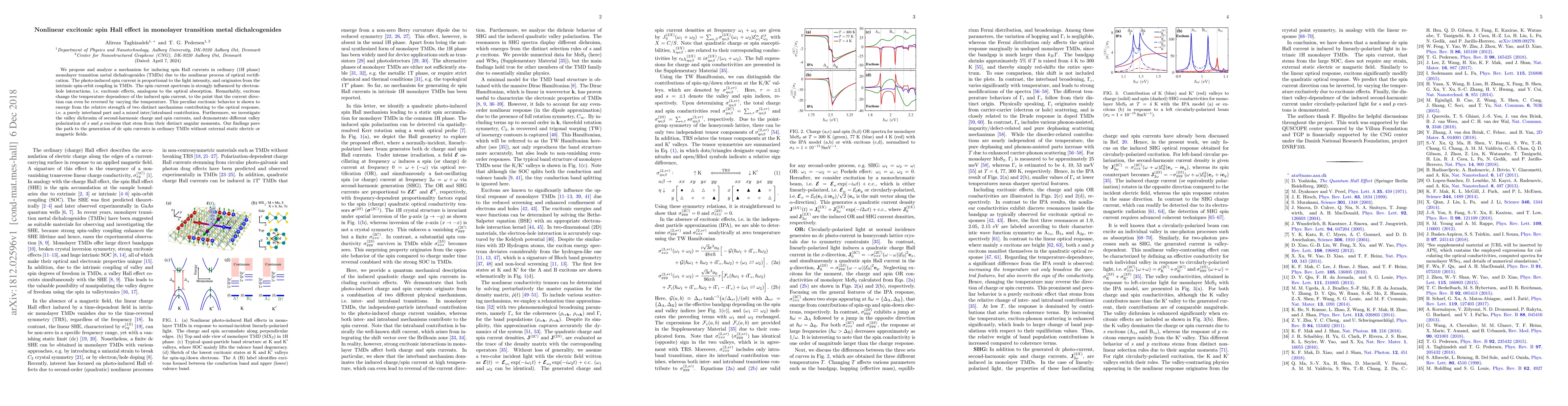 This paper proposes a mechanism for generating spin Hall currents in monolayer transition metal dichalcogenides via optical rectification, driven by nonlinear excitonic effects. The induced spin current's direction can be reversed by temperature changes due to the interplay between interband and mixed inter/intraband optical responses.