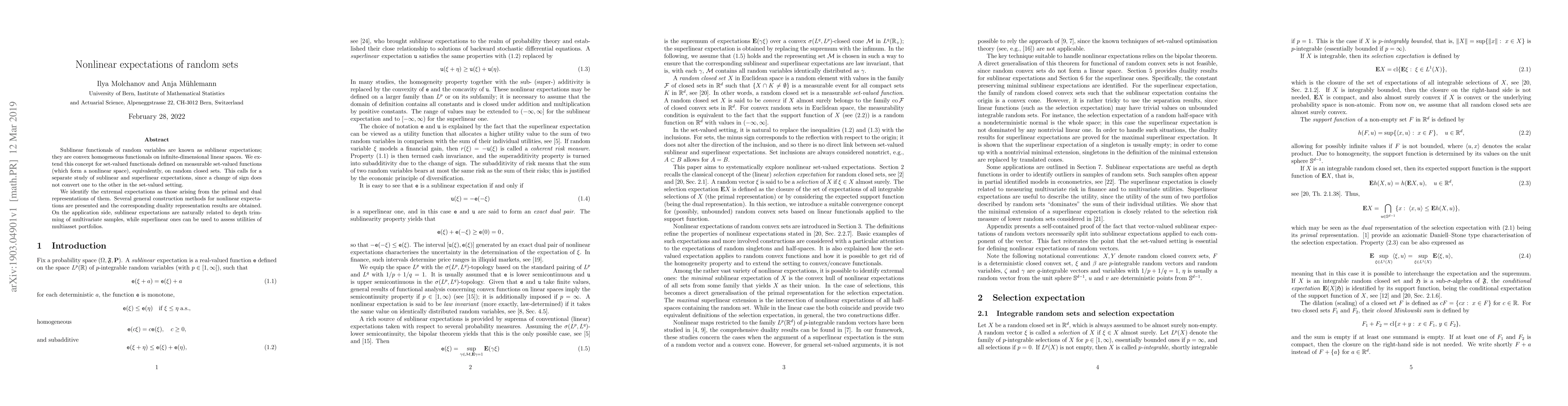 This paper extends the concept of sublinear expectations to set-valued functionals on random closed sets, introducing a distinct study of sublinear and superlinear expectations in nonlinear spaces. It presents construction methods and duality representations for these nonlinear expectations, with applications to depth trimming and multiasset portfolio utilities.