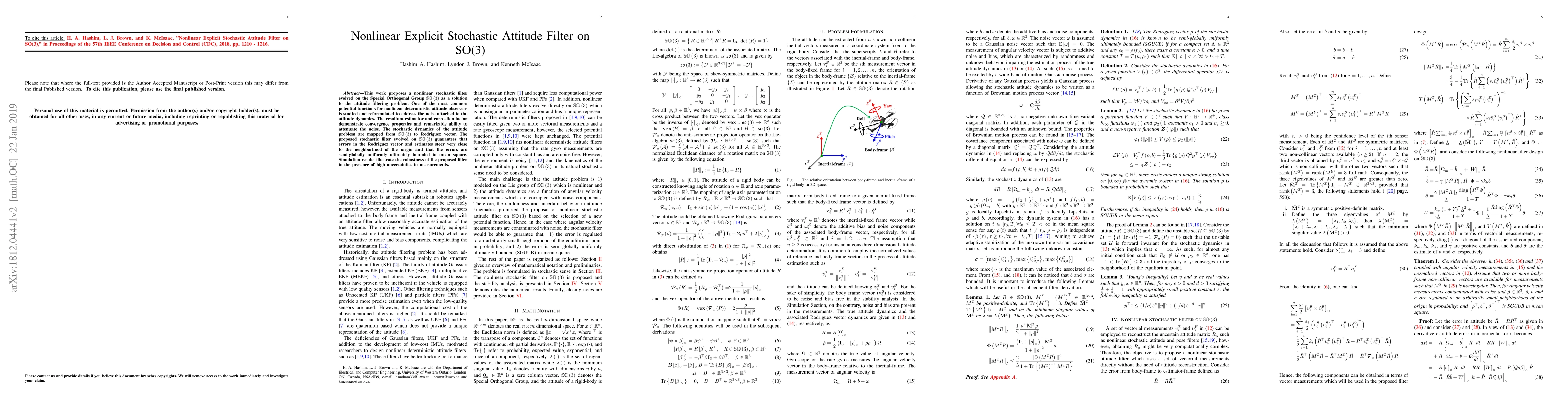 This paper introduces a nonlinear stochastic filter on SO(3) for attitude estimation, reformulating a common deterministic observer to handle noise. The proposed filter ensures semi-globally bounded errors and demonstrates robustness in simulations under high measurement uncertainties.