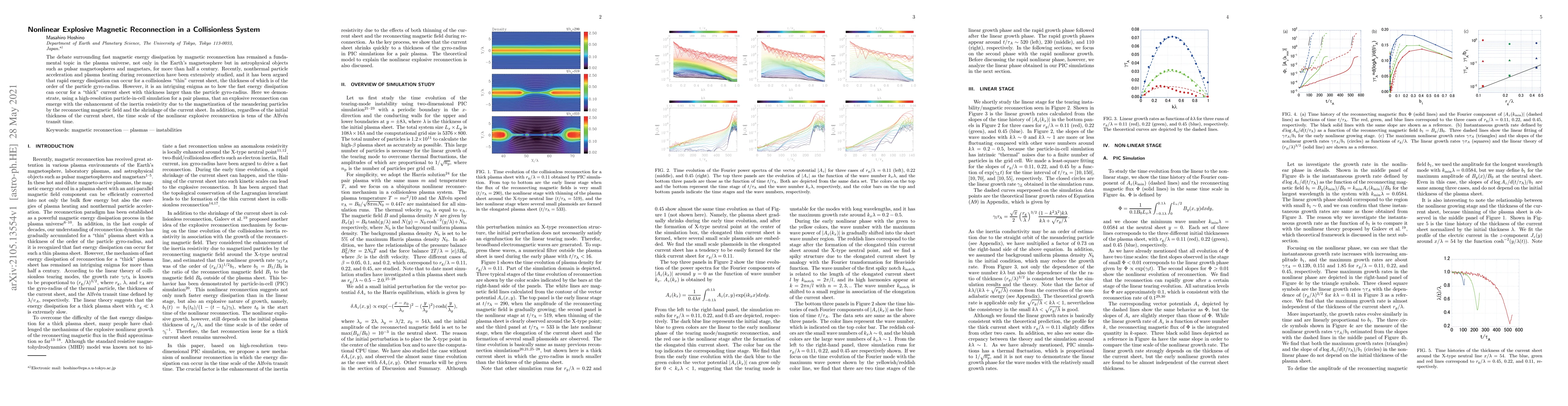 This paper demonstrates that nonlinear explosive magnetic reconnection can occur in collisionless systems even in "thick" current sheets, using high-resolution simulations. It shows that enhanced inertia resistivity and particle magnetization by the reconnecting magnetic field drive this rapid energy dissipation.
