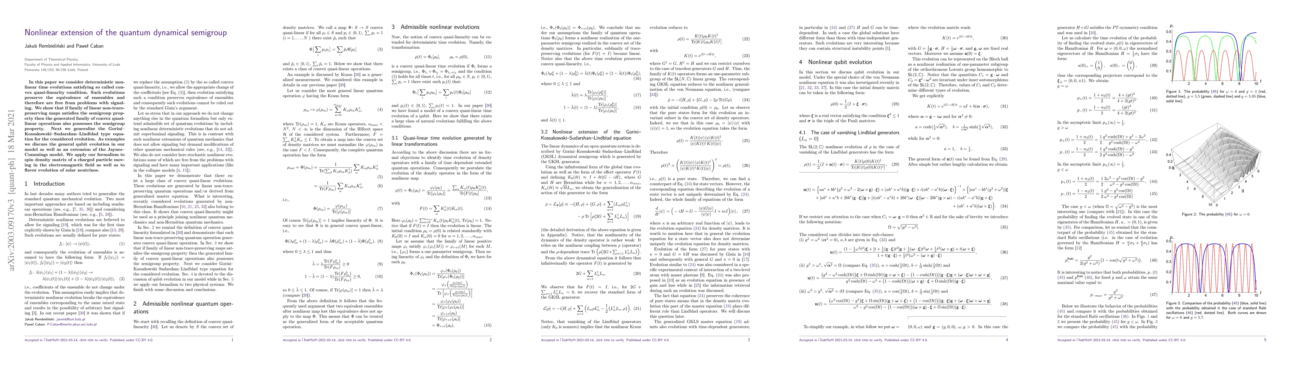 In this paper we consider deterministic nonlinear time evolutions satisfying so called convex quasi-linearity condition. Such evolutions preserve the equivalence of ensembles and therefore are free from problems with signaling. We show that if family of linear non-trace-preserving maps satisfies the semigroup property then the generated family of convex quasi-linear operations also possesses the semigroup property. Next we generalize the Gorini-Kossakowski-Sudarshan-Lindblad type equation for the considered evolution. As examples we discuss the general qubit evolution in our model as well as an extension of the Jaynes-Cummings model. We apply our formalism to spin density matrix of a charged particle moving in the electromagnetic field as well as to flavor evolution of solar neutrinos.