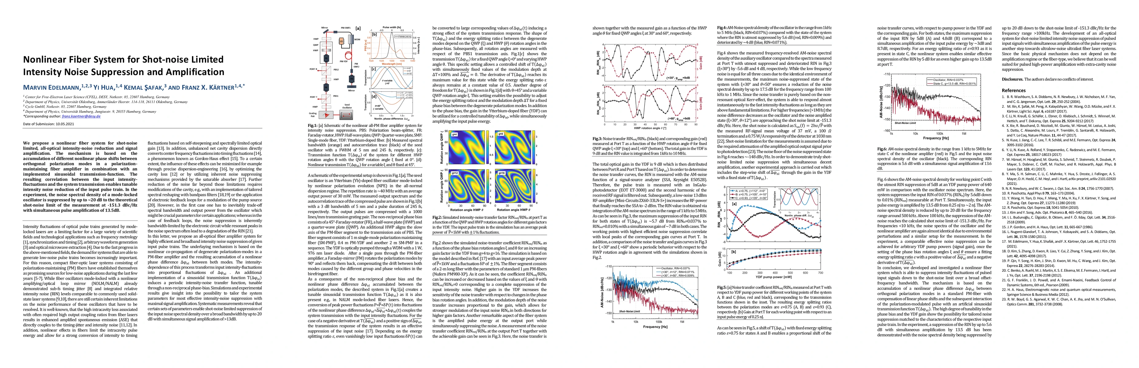This paper proposes a nonlinear fiber system that effectively reduces shot-noise limited intensity noise and amplifies signals through the use of polarization-maintaining fiber amplifiers and a sinusoidal transmission function. Experimental results show a noise reduction of up to 20 dB to the theoretical shot-noise limit.