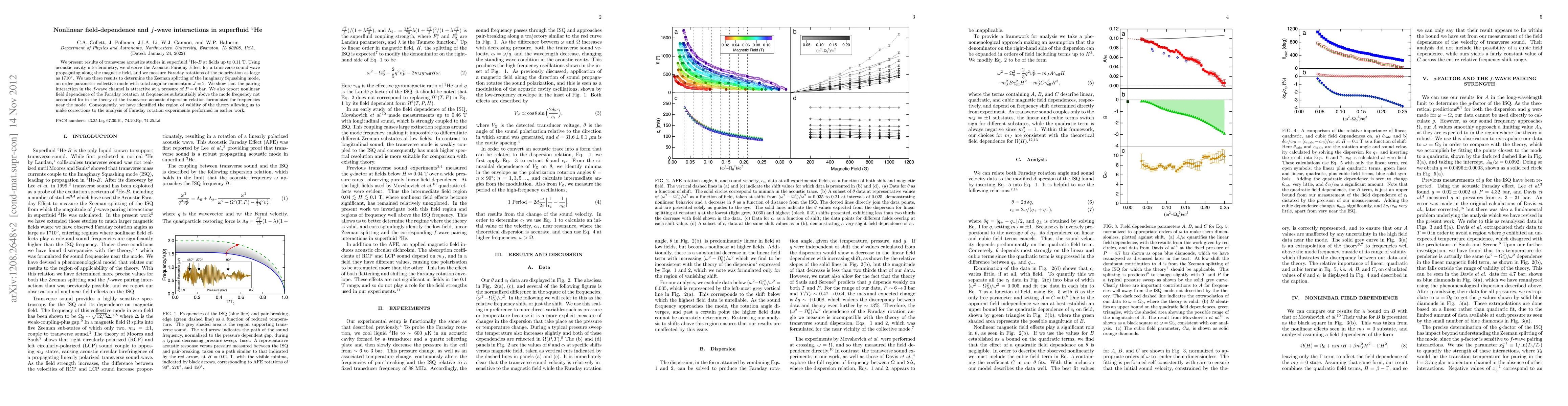 This study investigates the Nonlinear field-dependence and f-wave interactions in superfluid ^{3}He-B using acoustic cavity interferometry, revealing significant Faraday rotations and identifying the attractive pairing interaction in the f-wave channel, while also highlighting discrepancies in the existing theoretical framework for high-frequency acoustic dispersion.