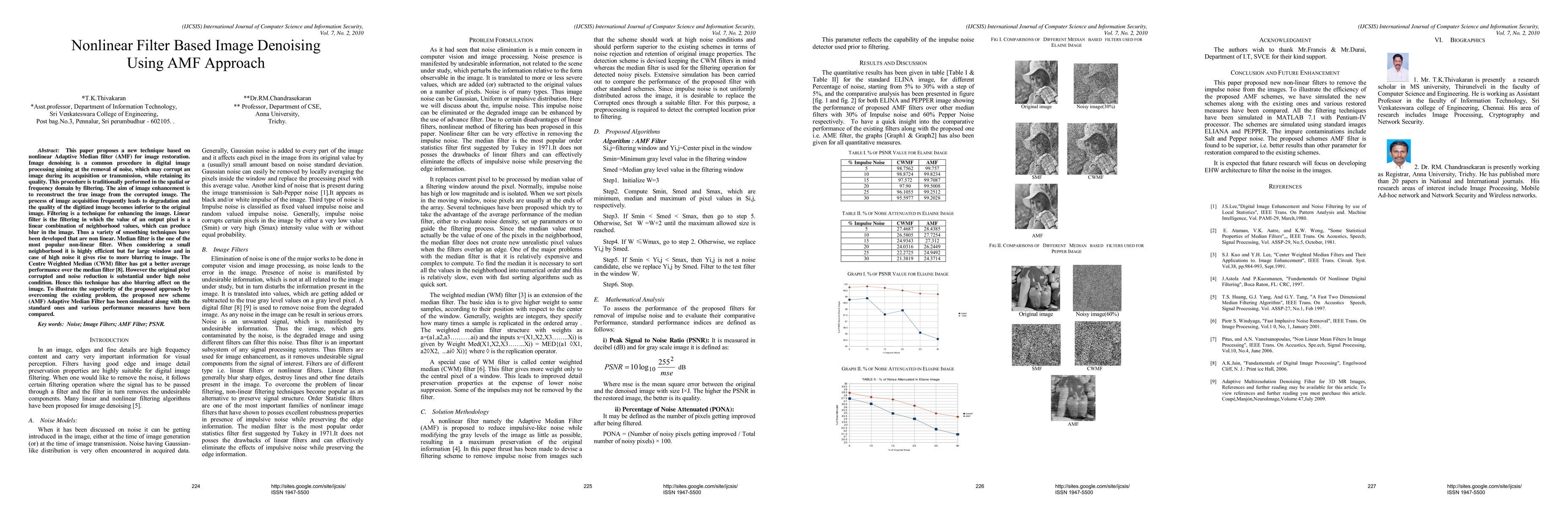 A new image denoising technique using Adaptive Median Filter (AMF) is proposed to overcome existing problems of blurring in traditional methods, offering improved noise reduction performance.