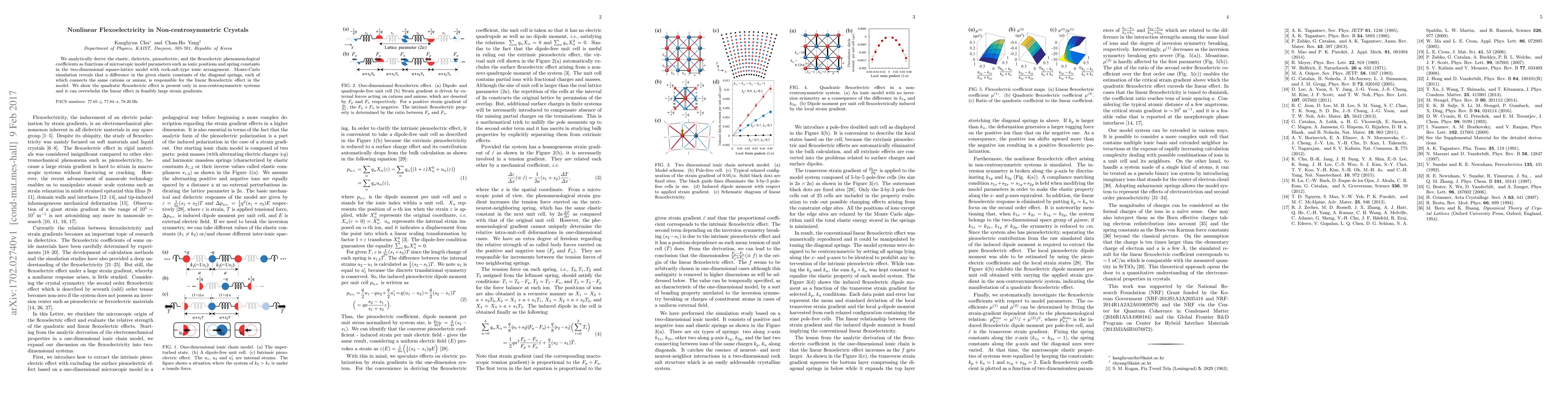 Researchers discovered that a difference in elastic constants between diagonal springs in non-centrosymmetric crystals leads to linear flexoelectricity, while quadratic effects only occur in these systems and can dominate large strain gradients.