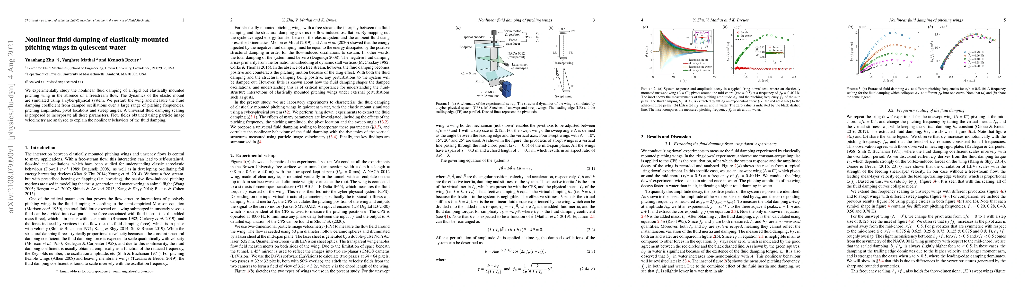 Researchers studied how a flexible wing in water absorbs energy from pitching motions, discovering a universal scaling law that explains the effect of several key parameters on fluid damping. Their experiments used particle image velocimetry to visualize the flow fields and gain insight into the nonlinear behaviors observed.