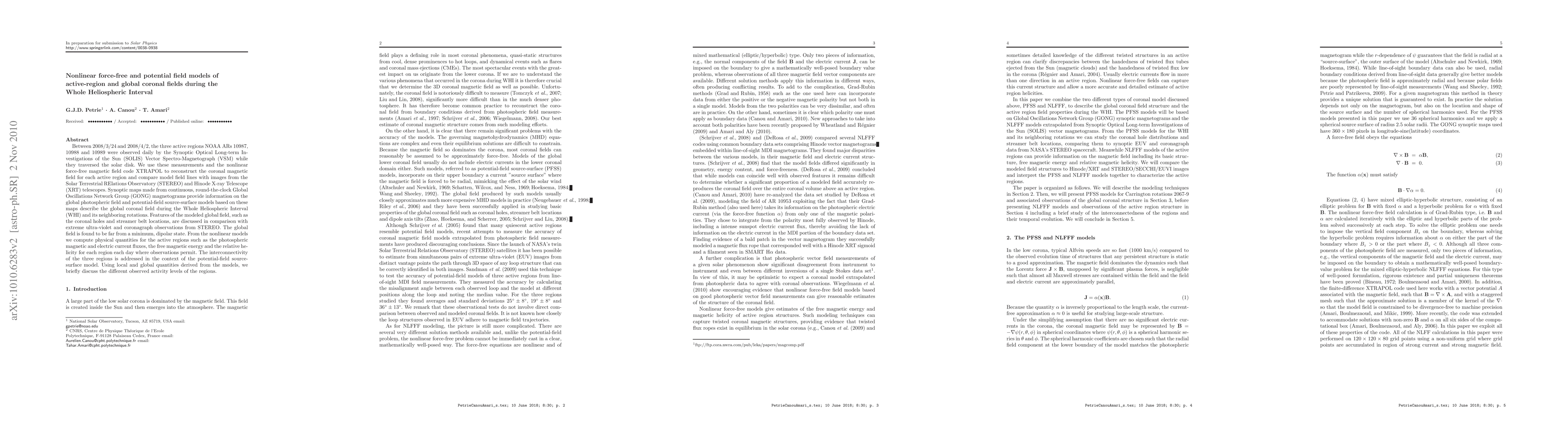 Between 2008/3/24 and 2008/4/2, the three active regions NOAA active regions 10987, 10988 and 10989 were observed daily by the Synoptic Optical Long-term Investigations of the Sun (SOLIS) Vector Spectro-Magnetograph (VSM) while they traversed the solar disk. We use these measurements and the nonlinear force-free magnetic field code XTRAPOL to reconstruct the coronal magnetic field for each active region and compare model field lines with images from the Solar Terrestrial RElations Observatory (STEREO) and Hinode X-ray Telescope (XRT) telescopes. Synoptic maps made from continuous, round-the-clock Global Oscillations Network Group (GONG) magnetograms provide information on the global photospheric field and potential-field source-surface models based on these maps describe the global coronal field during the Whole Heliospheric Interval (WHI) and its neighboring rotations. Features of the modeled global field, such as the coronal holes and streamer belt locations, are discussed in comparison with extreme ultra-violet and coronagraph observations from STEREO. The global field is found to be far from a minimum, dipolar state. From the nonlinear models we compute physical quantities for the active regions such as the photospheric magnetic and electric current fluxes, the free magnetic energy and the relative helicity for each region each day where observations permit. The interconnectivity of the three regions is addressed in the context of the potential-field source-surface model. Using local and global quantities derived from the models, we briefly discuss the different observed activity levels of the regions.