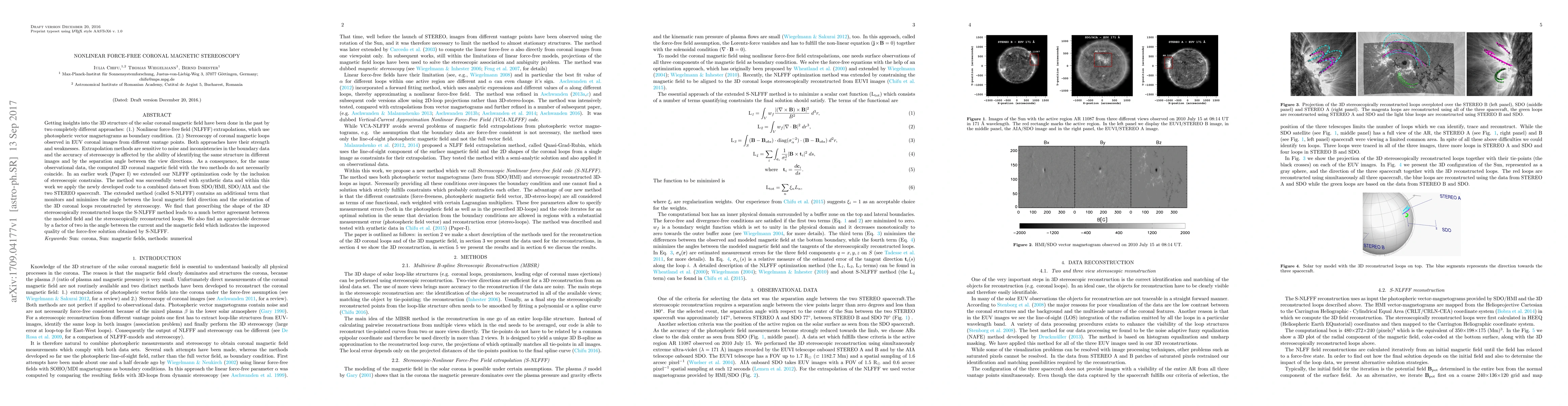 Getting insights into the 3D structure of the solar coronal magnetic field have been done in the past by two completely different approaches: (1.) Nonlinear force-free field (NLFFF) extrapolations, which use photospheric vector magnetograms as boundary condition. (2.) Stereoscopy of coronal magnetic loops observed in EUV coronal images from different vantage points. Both approaches have their strength and weaknesses. Extrapolation methods are sensitive to noise and inconsistencies in the boundary data and the accuracy of stereoscopy is affected by the ability of identifying the same structure in different images and by the separation angle between the view directions. As a consequence, for the same observational data, the computed 3D coronal magnetic field with the two methods do not necessarily coincide. In an earlier work (Paper I) we extended our NLFFF optimization code by the inclusion of stereoscopic constrains. The method was successfully tested with synthetic data and within this work we apply the newly developed code to a combined data-set from SDO/HMI, SDO/AIA and the two STEREO spacecraft. The extended method (called S-NLFFF) contains an additional term that monitors and minimizes the angle between the local magnetic field direction and the orientation of the 3D coronal loops reconstructed by stereoscopy. We find that prescribing the shape of the 3D stereoscopically reconstructed loops the S-NLFFF method leads to a much better agreement between the modeled field and the stereoscopically reconstructed loops. We also find an appreciable decrease by a factor of two in the angle between the current and the magnetic field which indicates the improved quality of the force-free solution obtained by S-NLFFF.